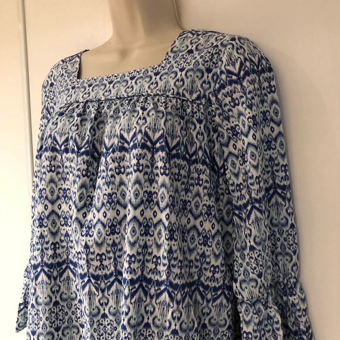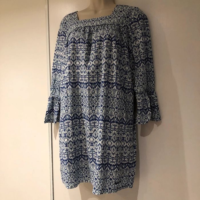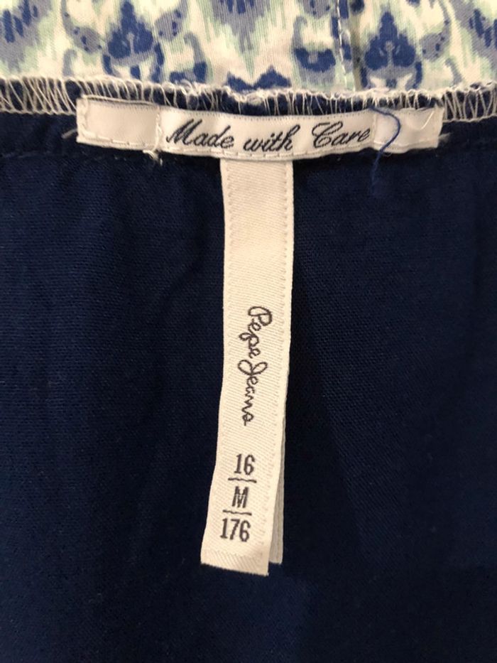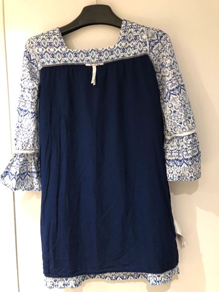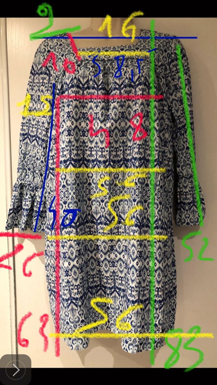 Je vends une robe Teddy Smith robe bleue blanche 16 ans/M/176 De la marque Teddy Smith elle est en parfait état Comme neuf Les mesures données sur Photos Le bas de manches possède des élastiques à environ 14 cm du bas de celle-ci La robe possède deux petits boutons dans le dos au niveau de la nuques avec boutonnières élastiques Il y a un bouton supplémentaire à l'intérieur sur l'étiquette de composition et lavage La robe est doublée Il y a une broderie avec la marque Teddy Smith en noir en bas à gauche dans le bas de la robe lavables à basse température. Composition100 % viscose Choup v /270/Orange 0 .