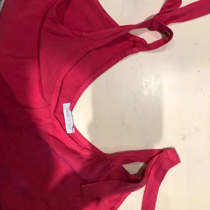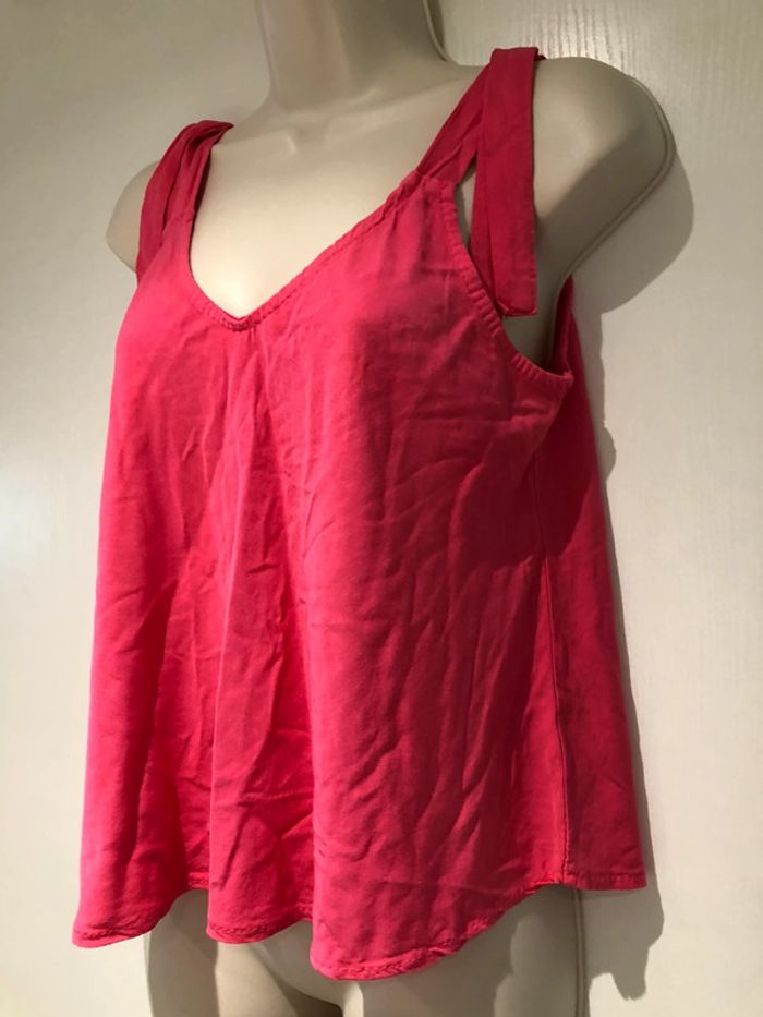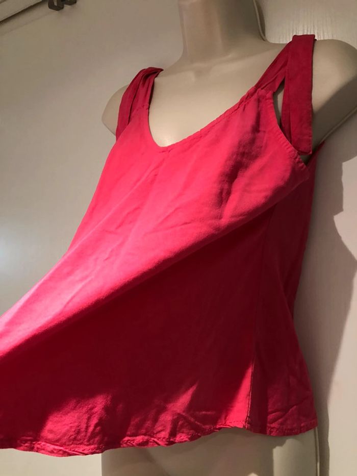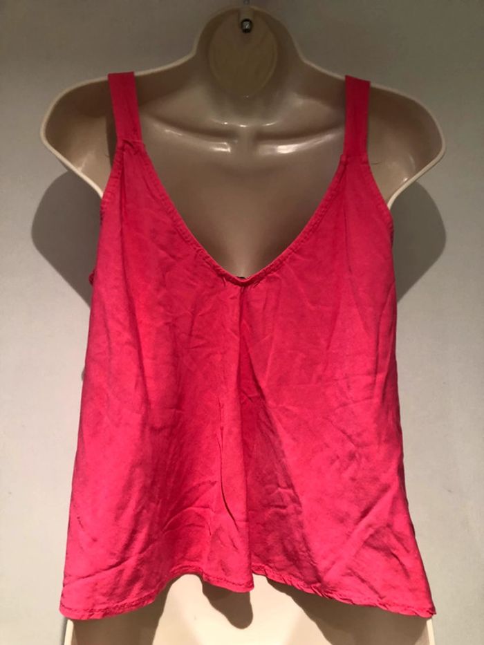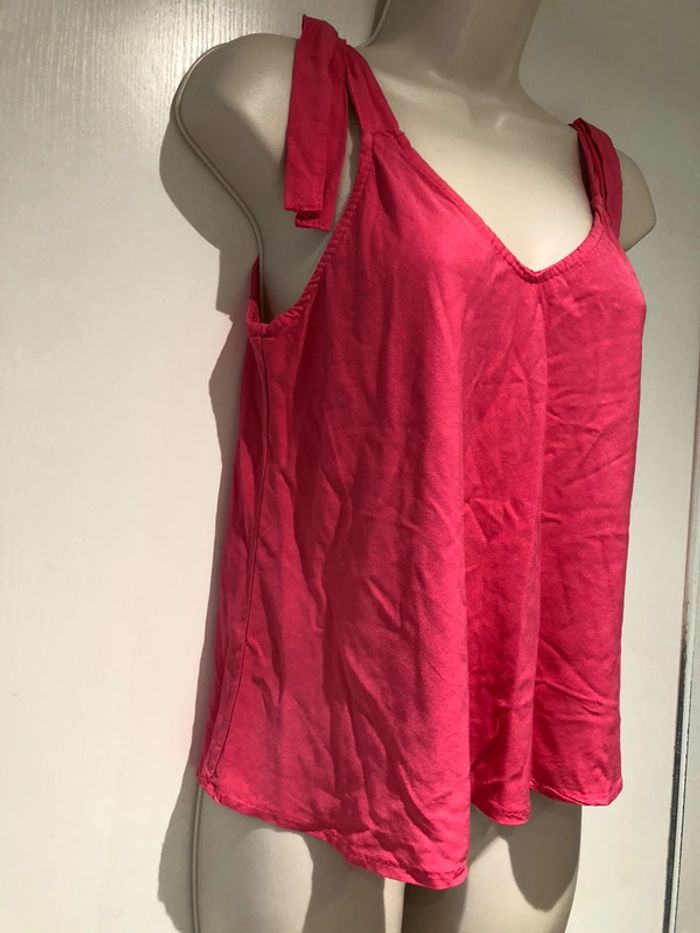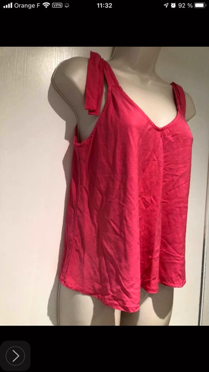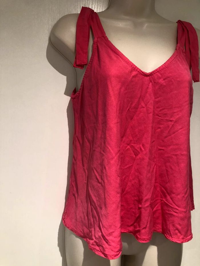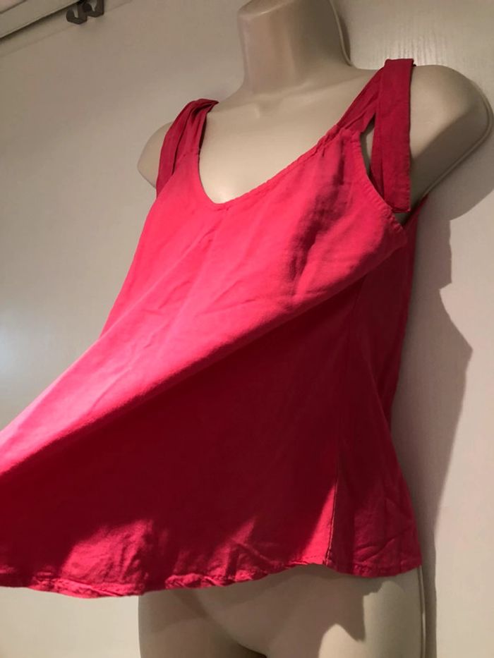Je suis vends un petit top un peu rose fuchsia 100% tencel Top rose taille 38 Made in Italy Il est de la marque Made in Italy Taille 38 D’autres renseignements sur demande Il est en parfait état Les mesures sont données ci-dessous Largeur sous les aisselles sans tirer sur la matière 50 cm en tirant dessus cela manque plus que 57 Longueur sous les aisselles jusqu’en bas 29 cm Longueur haut de poitrine jusqu’en bas 40,5 cm Longueur milieu de l’épaule jusqu’en bas 55 cm longueur milieu du décolleté jusqu’en bas 36 cm Largeur bas de Top 70 cm Les mesures sont également données en photo Choup v /100/2