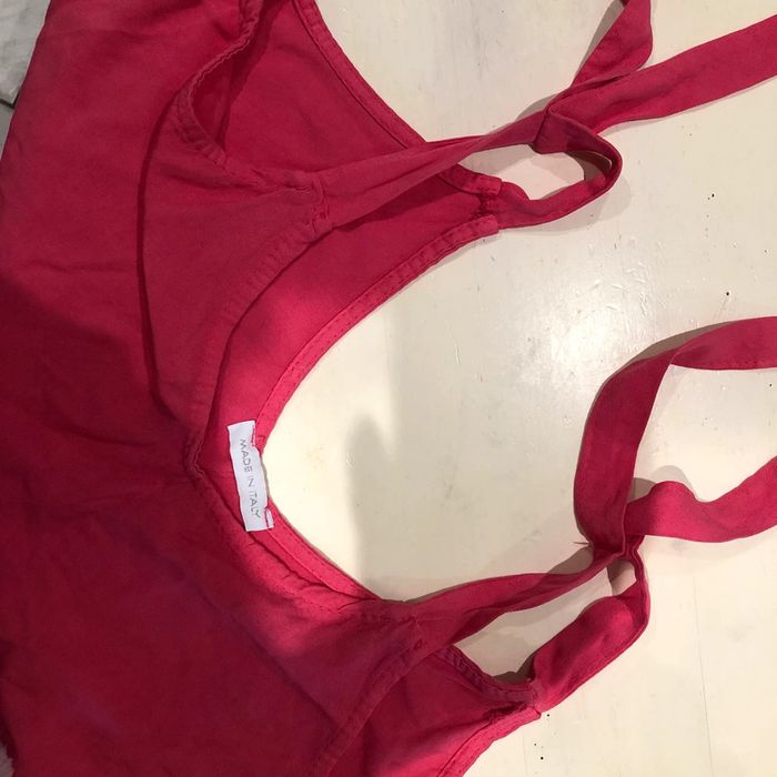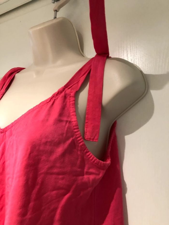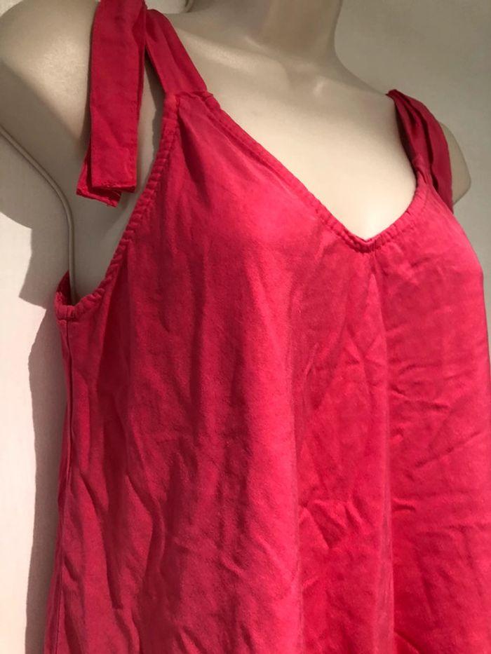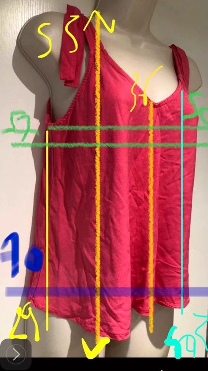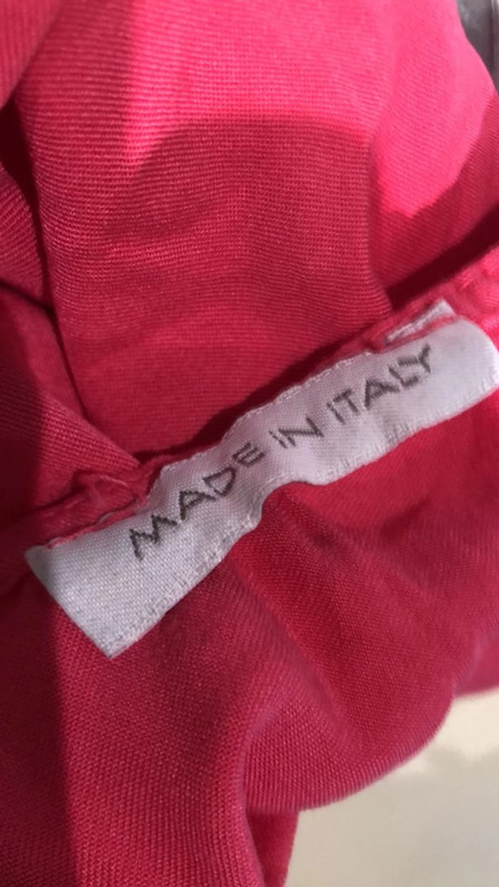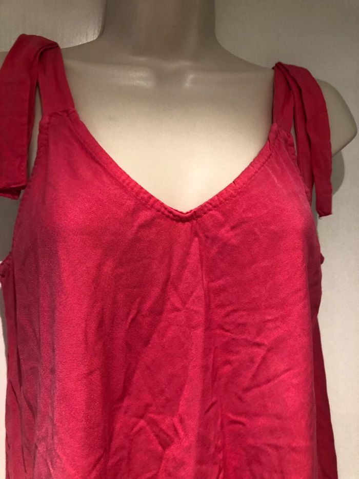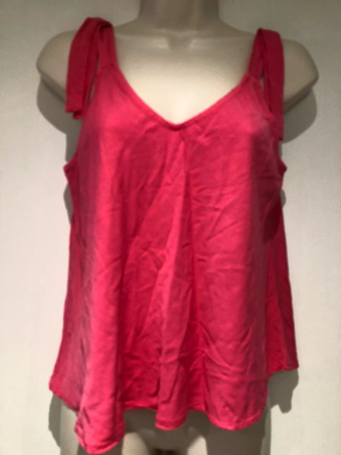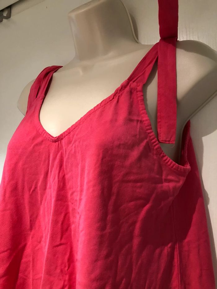 Je suis vends un petit top un peu rose fuchsia 100% tencel Top rose taille 38 Made in Italy Il est de la marque Made in Italy Taille 38 D’autres renseignements sur demande Il est en parfait état Les mesures sont données ci-dessous Largeur sous les aisselles sans tirer sur la matière 50 cm en tirant dessus cela manque plus que 57 Longueur sous les aisselles jusqu’en bas 29 cm Longueur haut de poitrine jusqu’en bas 40,5 cm Longueur milieu de l’épaule jusqu’en bas 55 cm longueur milieu du décolleté jusqu’en bas 36 cm Largeur bas de Top 70 cm Les mesures sont également données en photo Choup v /100/2