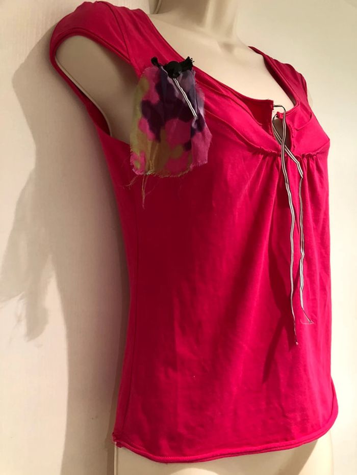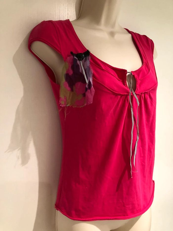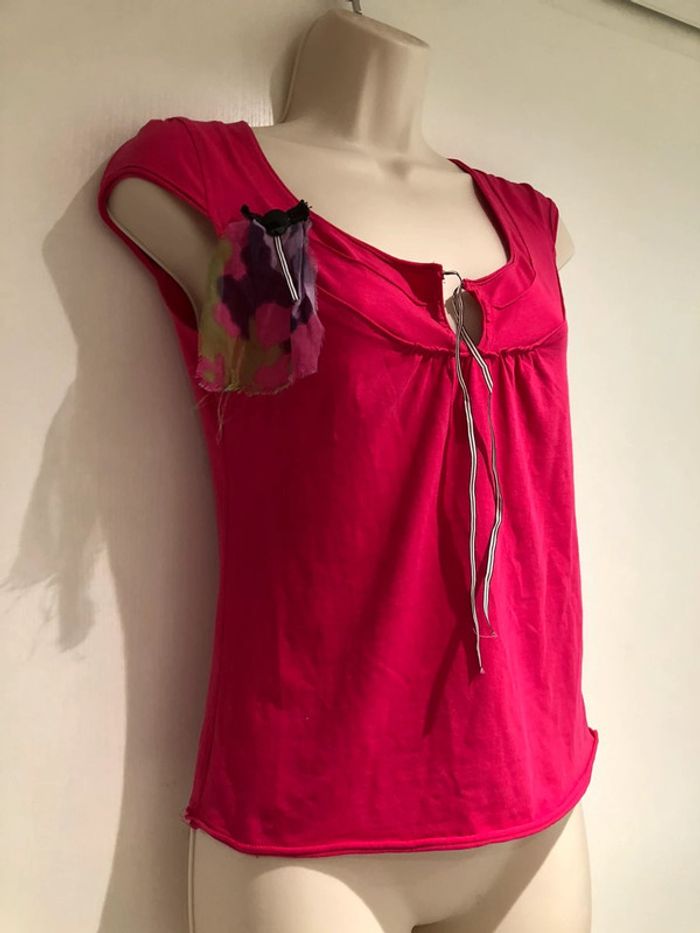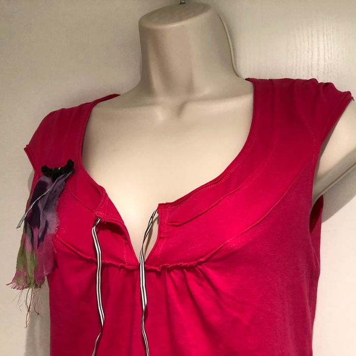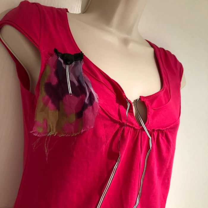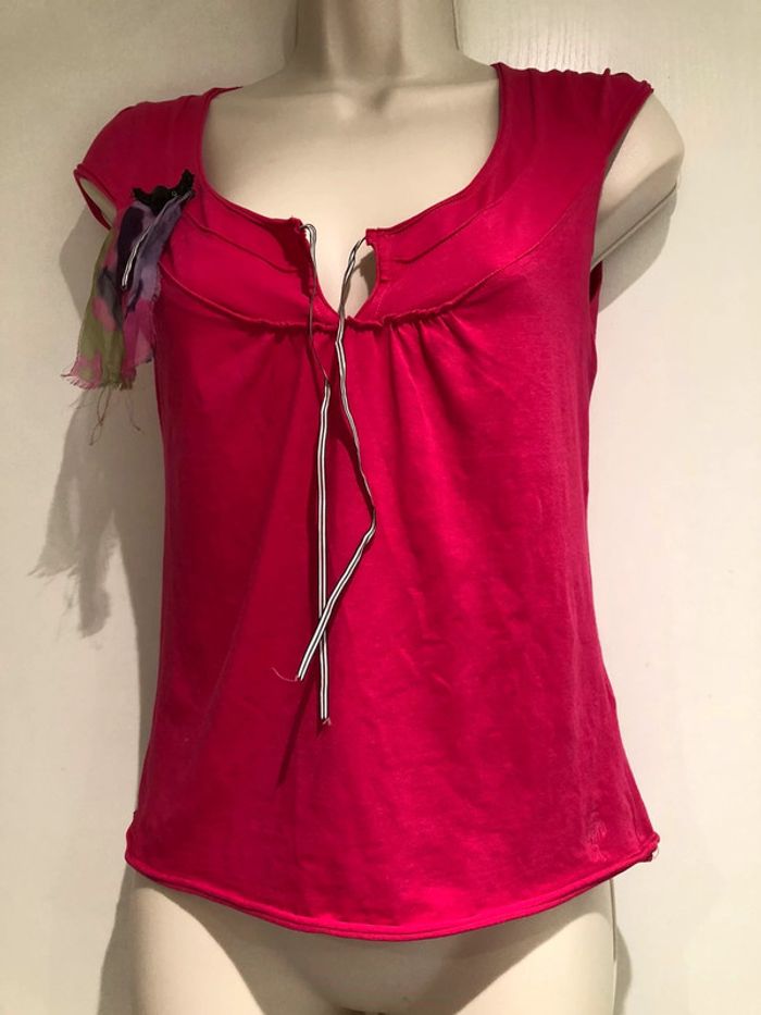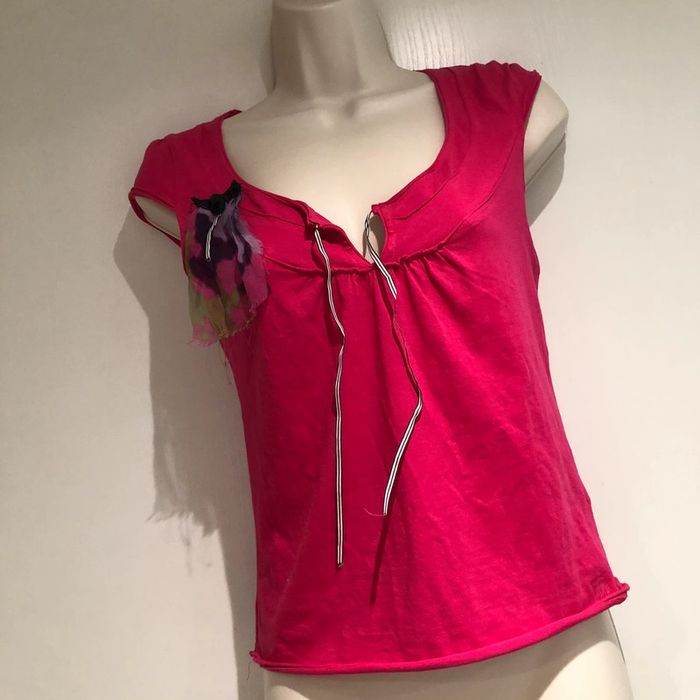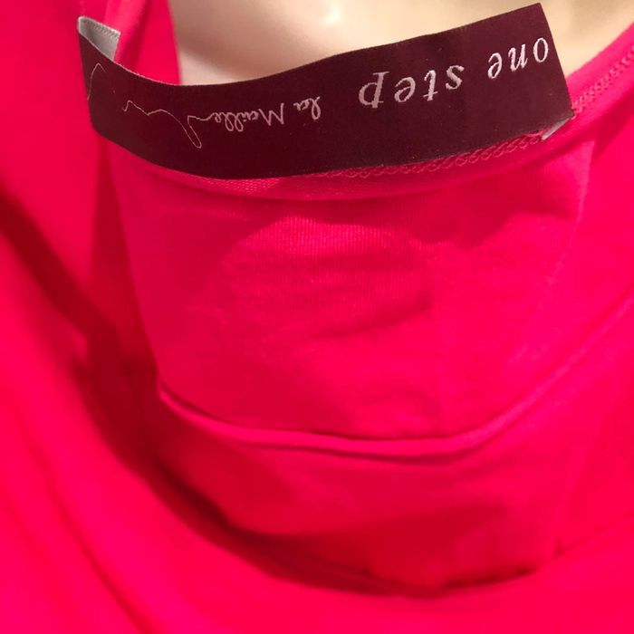 Je vends un T-shirt T-shirt on step Rose fuchsia taille 38 de la marque on step Taille 38 Lavables à 30° 95 % coton 5 % élasthane Il est en très bon état « seul bémol «  il y a une petite trace dans le dos à environ 1 cm en dessous du col voir photo. Rien de méchant mais à préciser. D’autres renseignements sur demande Choup/ lbc /100/2