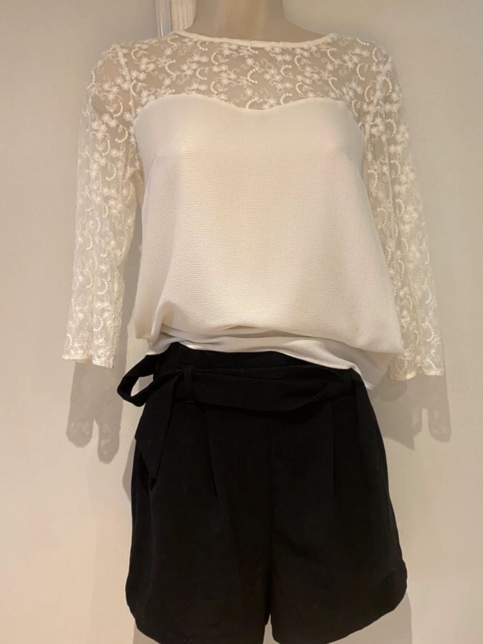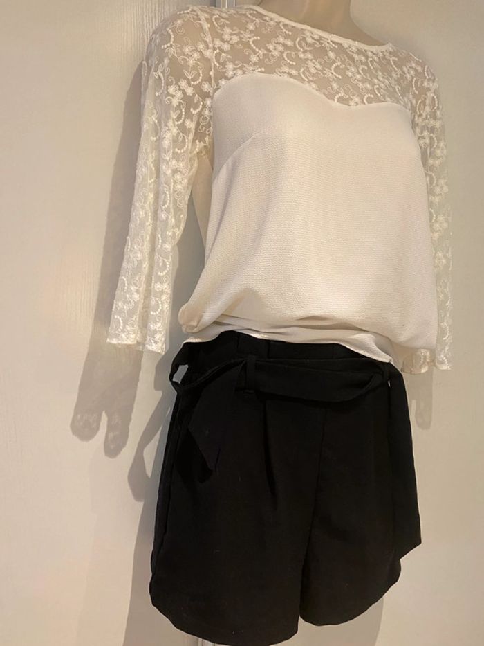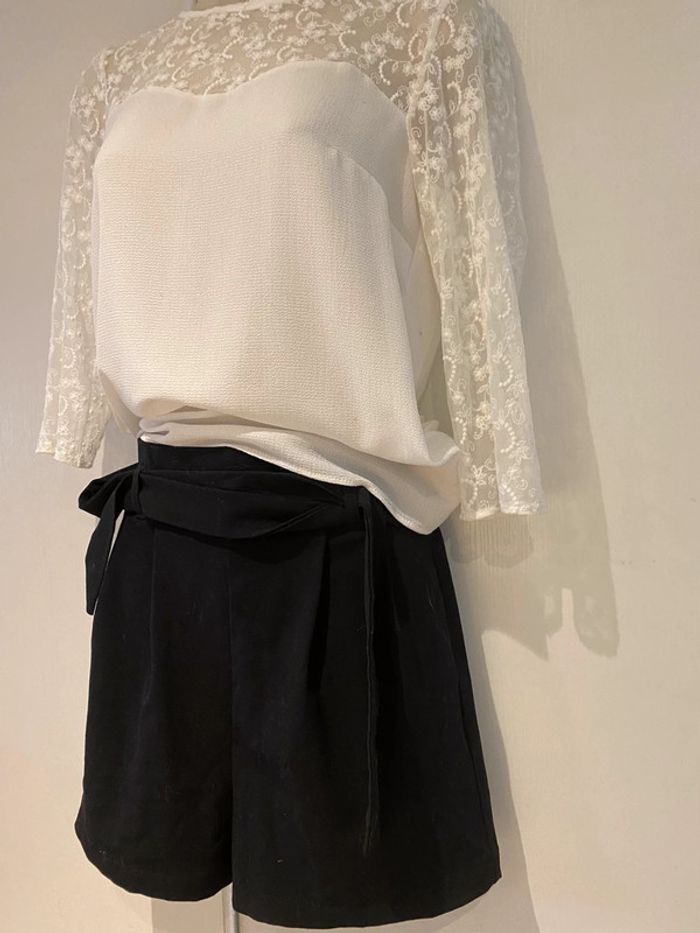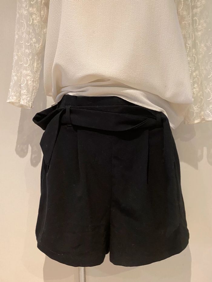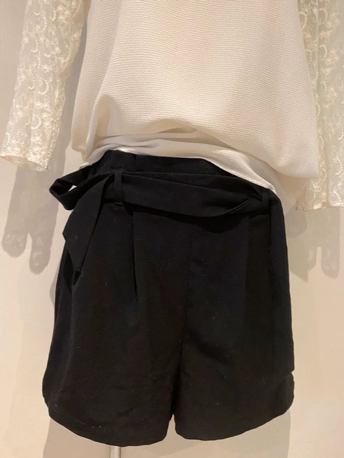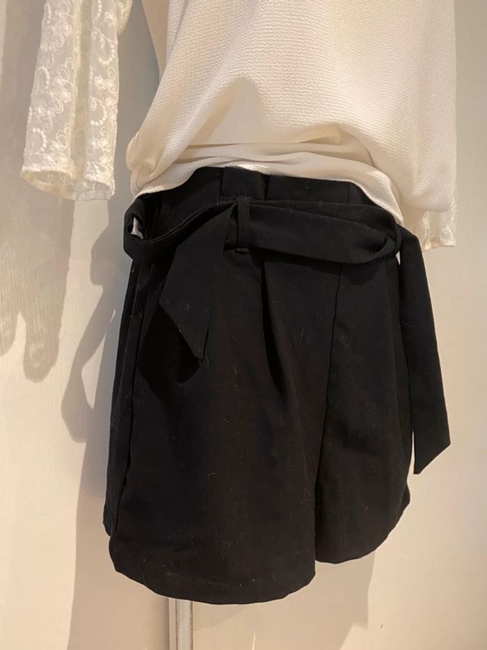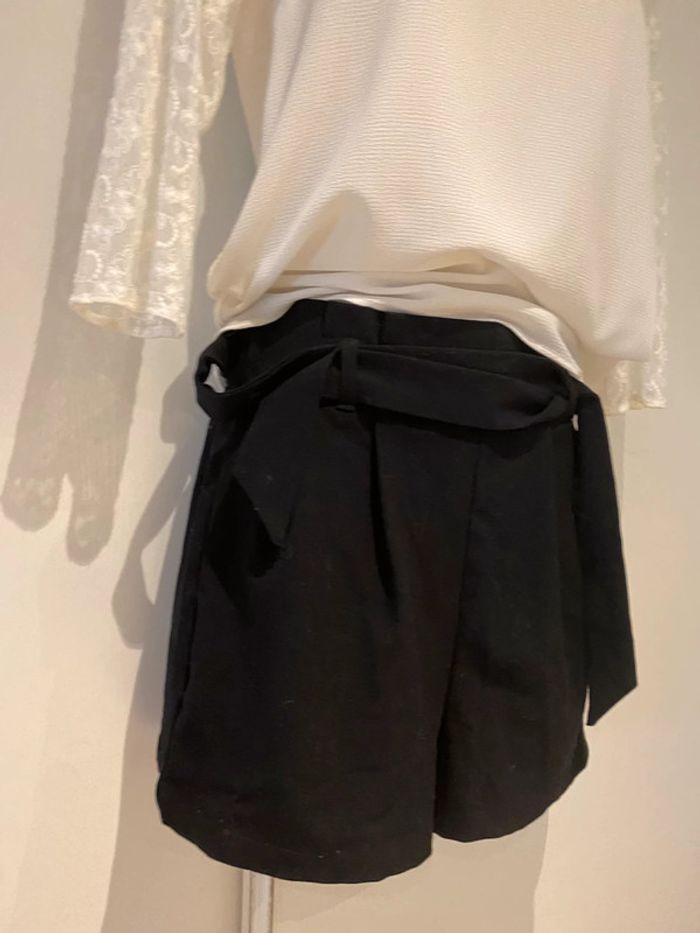 Je vends un short noir De la marque stradivarius Taille xs Shirt noir stradivarius taille Xs La ceinture est élastique dans le dos Longueur de la ceinture sans tirer sur la matière 33 cm En tirant dessus cela monte jusque 45 cm Longueur sur les côtés 36,5 cm longueur milieu devant jusqu’en bas de l’entrejambe 35 cm Longueur milieu du dos jusqu’en bas de l’entrejambe 40 cm La matière est légèrement élastique Le short est comme neuf Choup lbc /200. 1