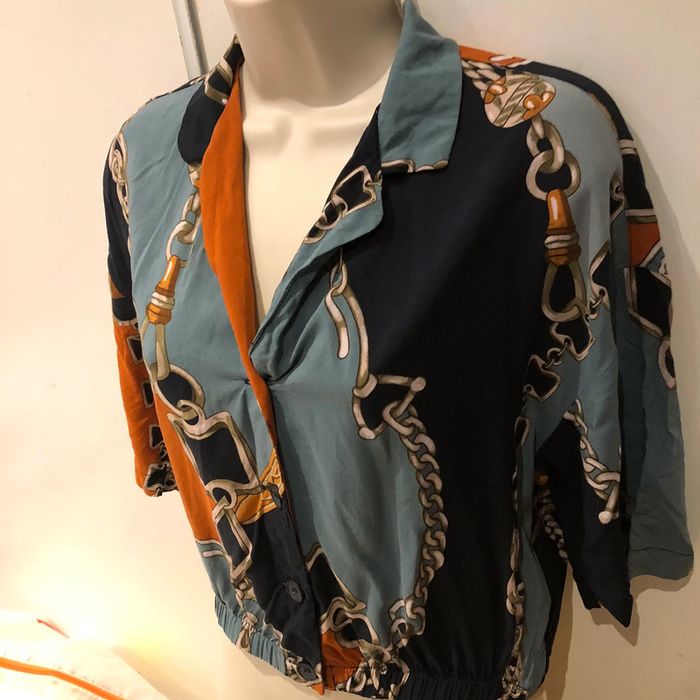 Je vends une petite chemise bouffante Chemise pull and bear taille S Elle est élastique dans le bas Taille S/36 100 % viscose lavables à 30° Largeur d’une épaule à l’autre fois 60 cm Largeur d’une épaule 25 cm Longueur d’une manche24 cm Largeur sous les aisselles 52 cm Largeur sous les aisselles jusqu’en bas 20 cm Largeur d’une épaule jusqu’en bas 48 cm Longueur milieu du dos jusqu’en bas 50 cm Les couleurs sont très bien représentées sur les photos Choup lbc /110. 1
