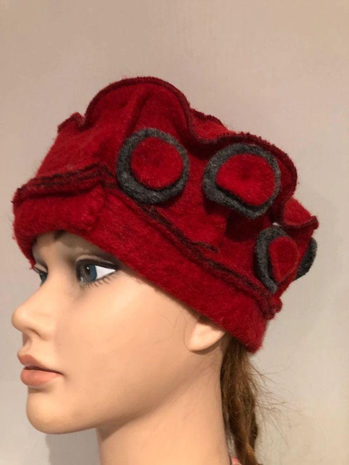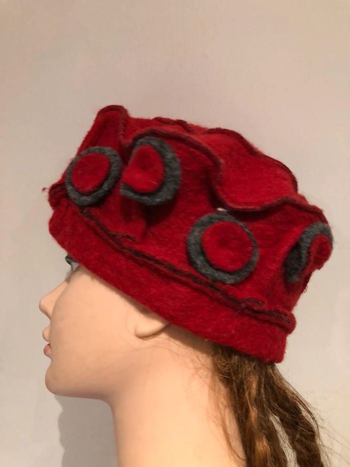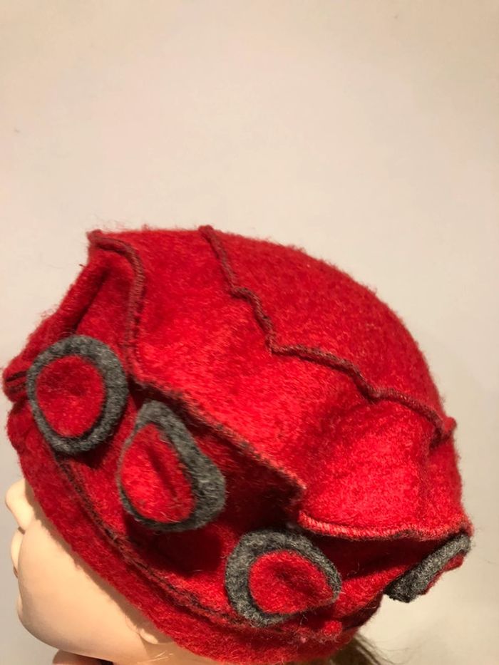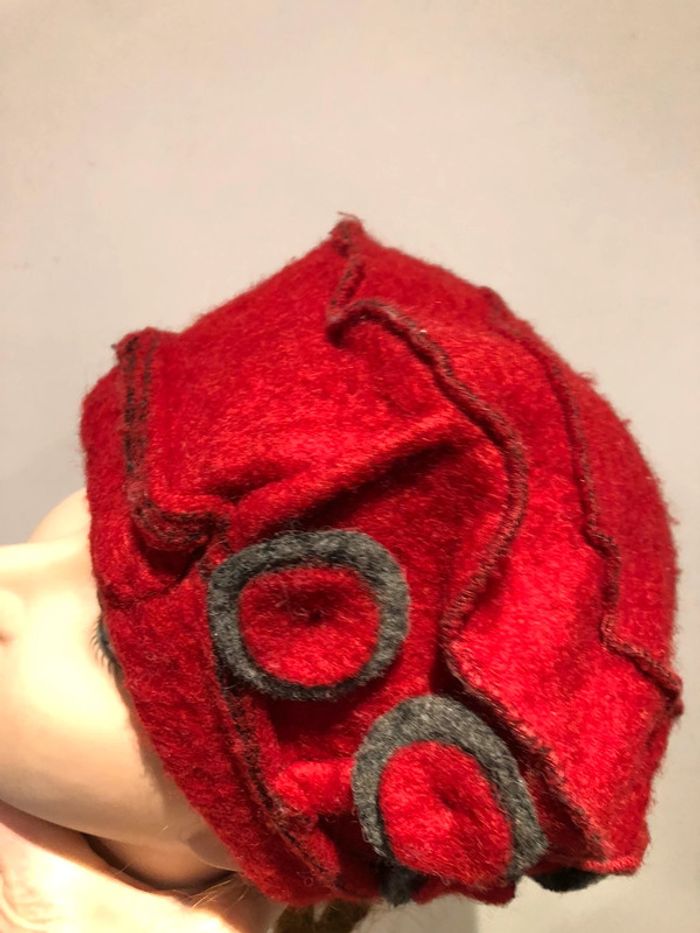 Chapeau rouge et gris laine et polyester Made  italy - photo numéro 3