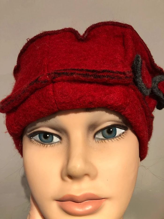 Chapeau rouge et gris laine et polyester Made  italy - photo numéro 1