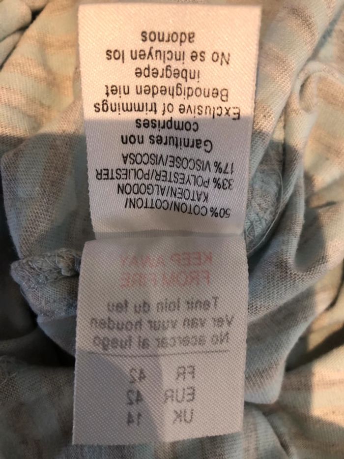 Je vends une chemise de nuit Chemise de nuit étam De la marque Etam taille 42 sur l’étiquette il fait en fait un 40 pour moi un taille 40 voir les Mesure Elle est en parfait état Lavables à 30° 50 % coton 33 % polyester 17 % viscose Largeur sous les aisselles sans tirer sur la matière 44cm En tirant dessus cela va jusque 56 cm Longueur sous les aisselles jusqu’en bas 69 cm Largeur au niveau de la taille 39 cm Largeur bas de chemise 50 cm de chaque côté est fondu sur 10 cm Je souhaite que vous achetiez cette combinaison après avoir regardé les mesures et bien lui que j’ai marqué taille 40 au lieu de taille 42 sur l’étiquette. Je souhaite que la personne qui achète soit satisfaite. Mada lbc
