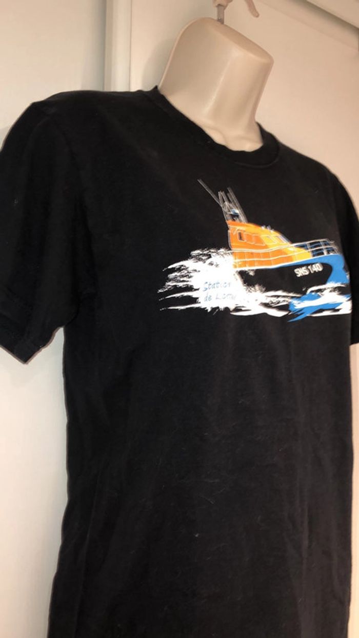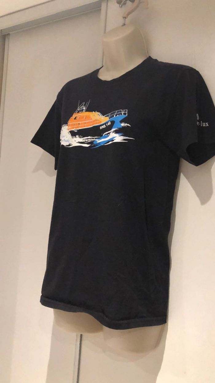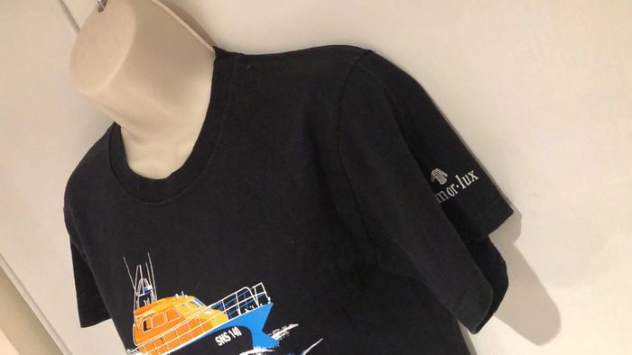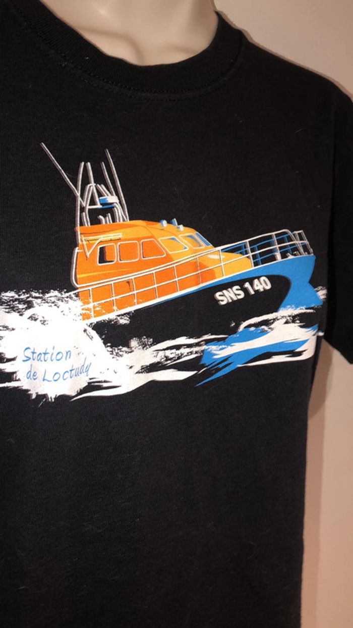 Je vends un T-shirt De la marque Armor Lux Il est en taille S 100 % coton Il y a un bateau en flocage sur le devant c’est un bateau de sauvetage de la SNS. Largeur d’une épaule à l’autre et 41,5 Largeur d’une épaule 13 cm Largeur sous les aisselles45 cm Longueur milieu de l’épaule Jusqu’en bas 64 Longueur d’une manche 17 cm