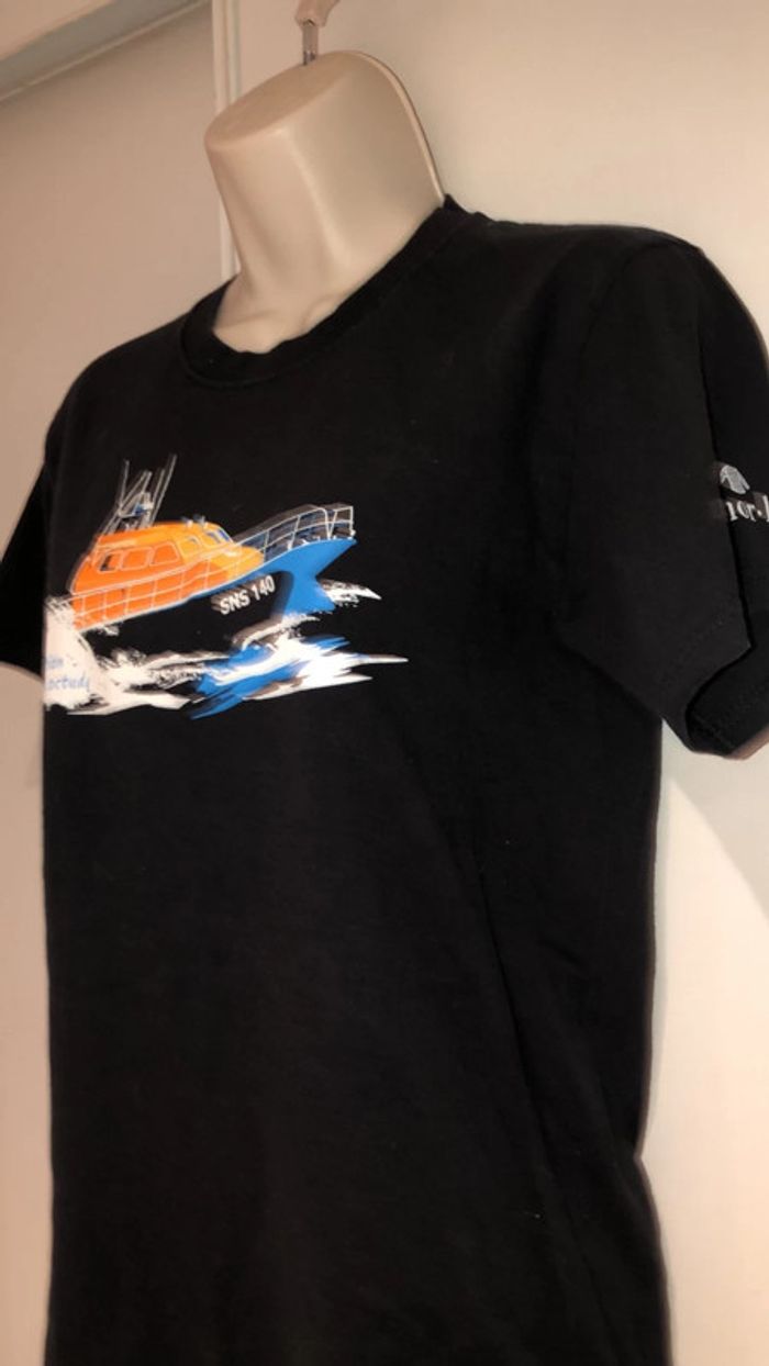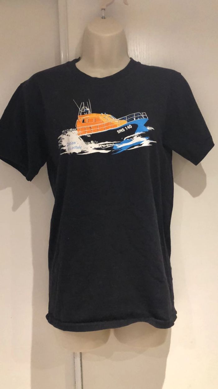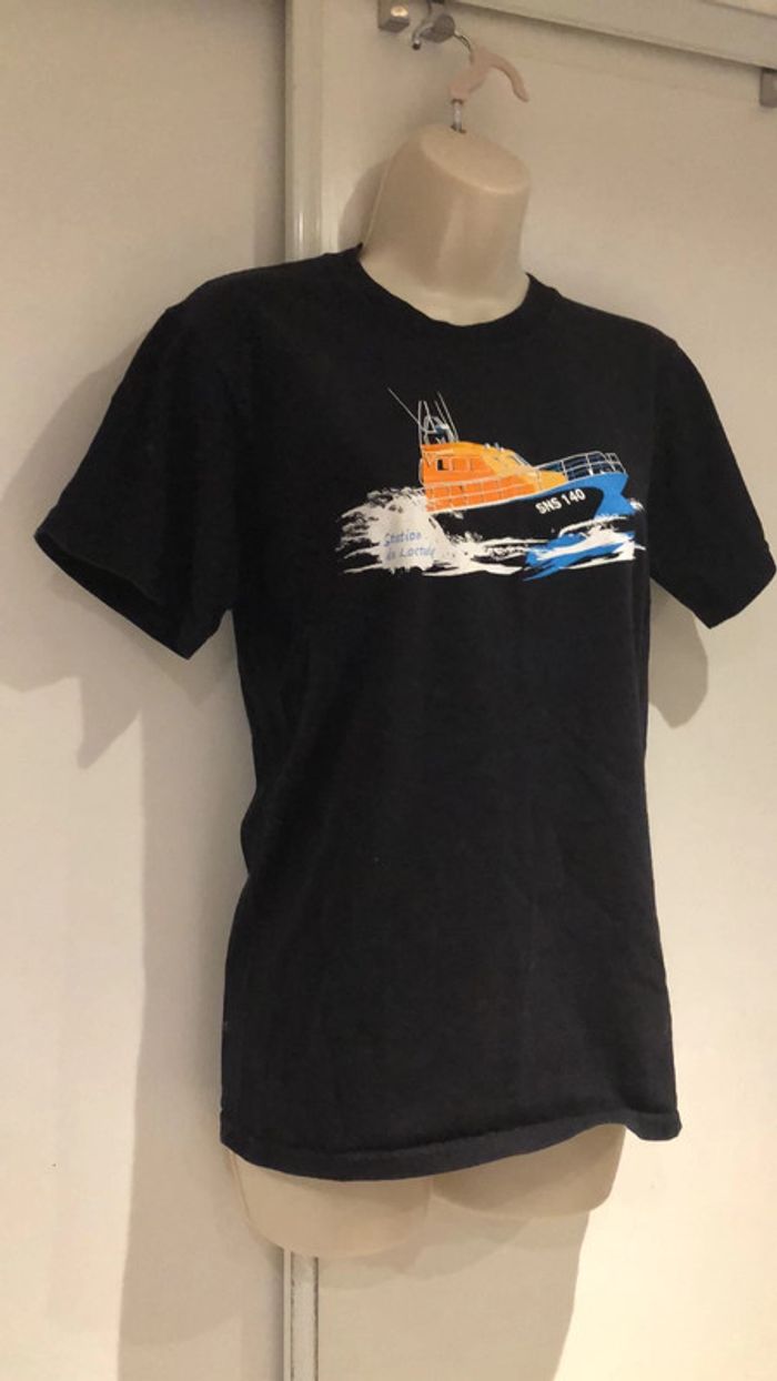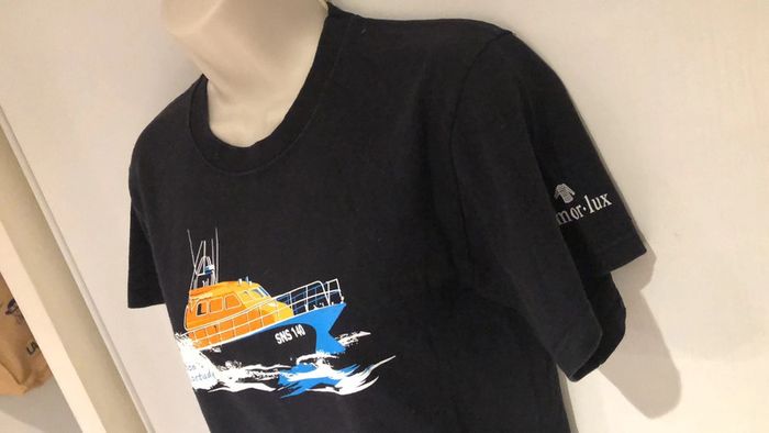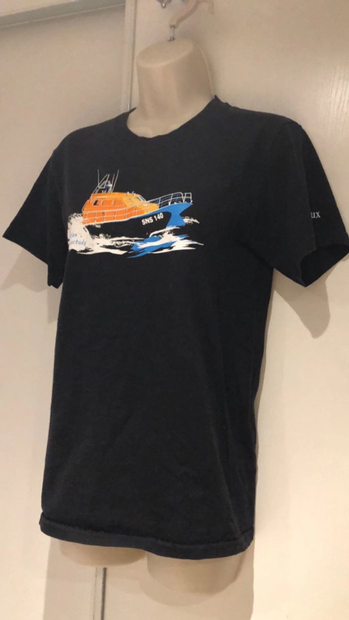 Je vends un T-shirt De la marque Armor Lux Il est en taille S 100 % coton Il y a un bateau en flocage sur le devant c’est un bateau de sauvetage de la SNS. Largeur d’une épaule à l’autre et 41,5 Largeur d’une épaule 13 cm Largeur sous les aisselles45 cm Longueur milieu de l’épaule Jusqu’en bas 64 Longueur d’une manche 17 cm
