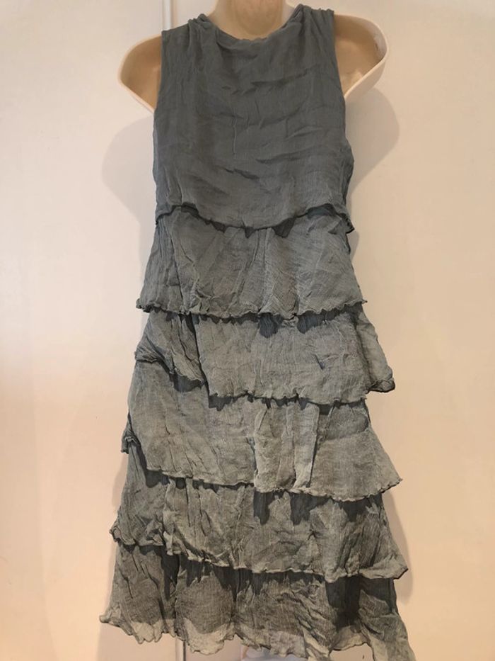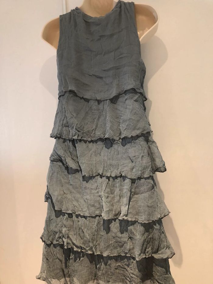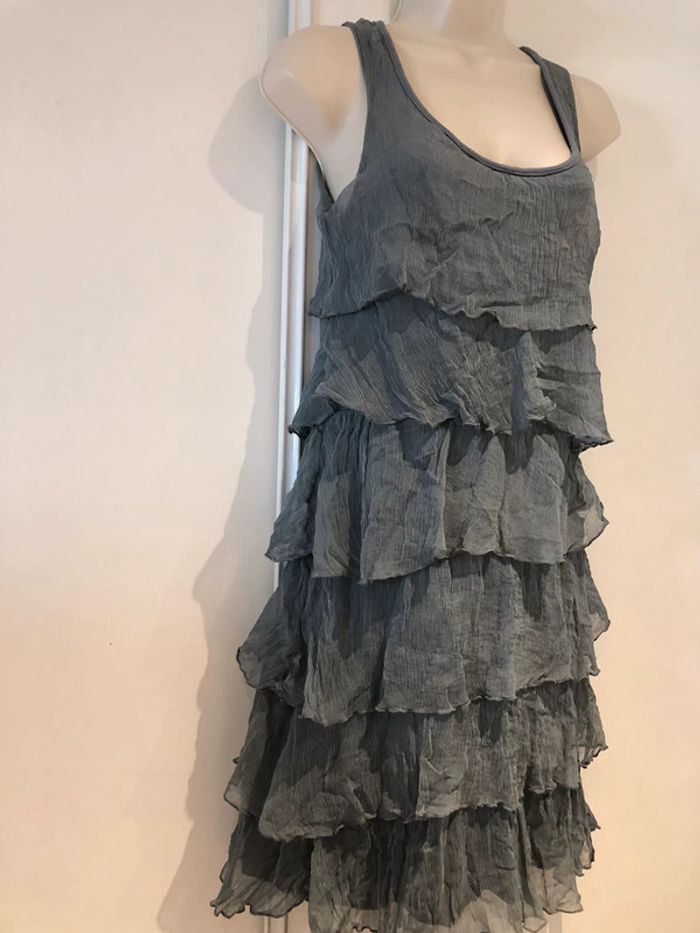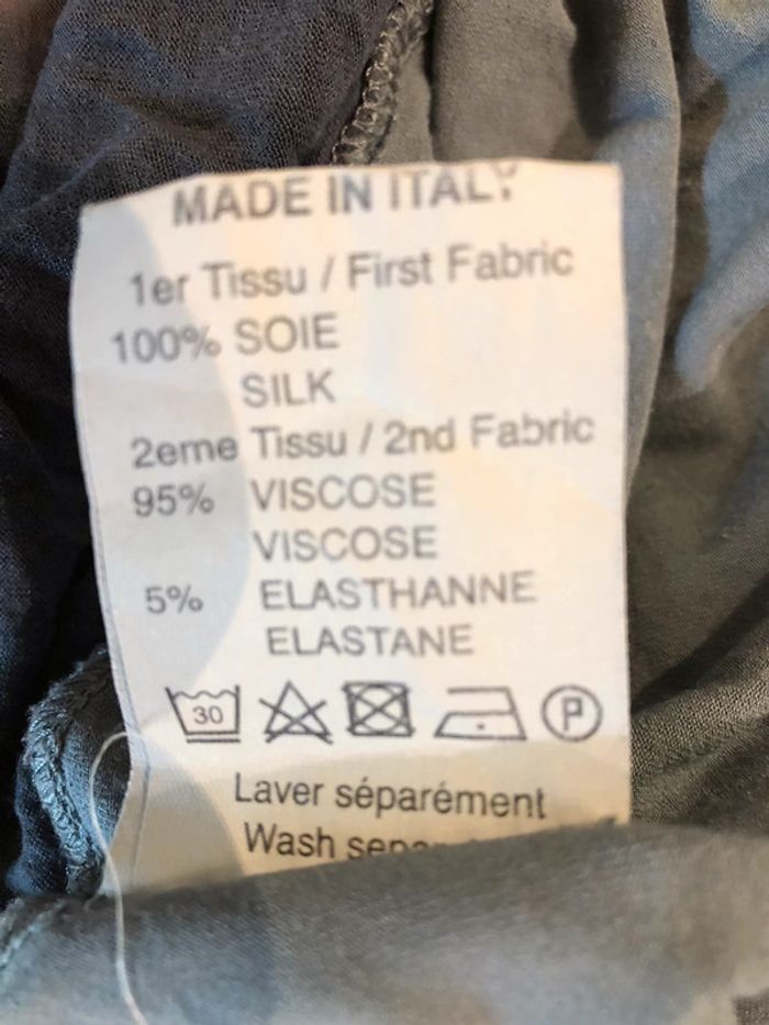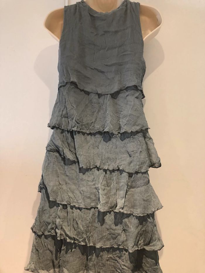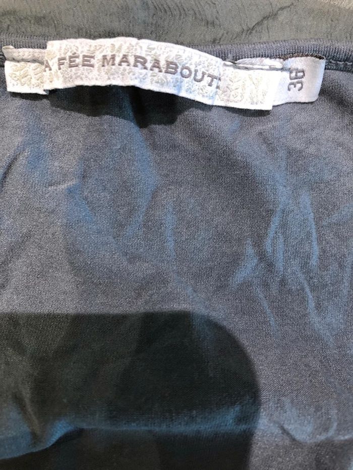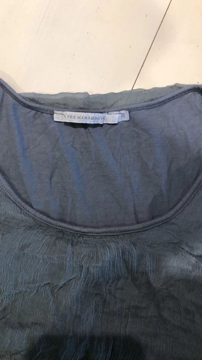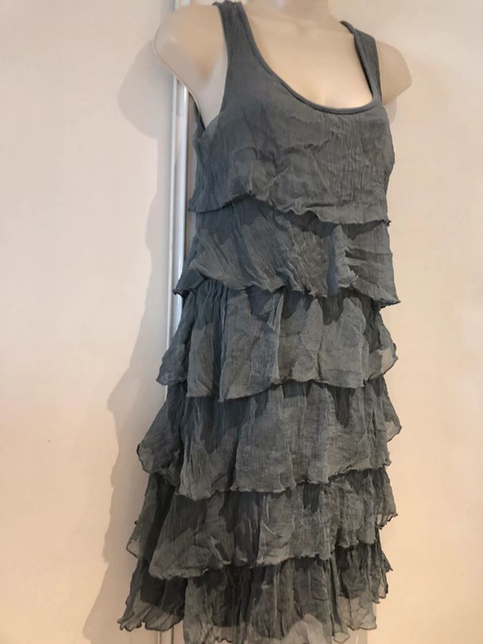 Je vends Une robe en 100 % soie l’extérieur La doublure est en viscose élasthane de la marque la fée Maraboutée Taille 36 Elle est grise La partie volant est en soie Elle est très élastique pour la partie du dessous la largeur sous les aisselles est très extensible voir photo. D’autres renseignements sur demande