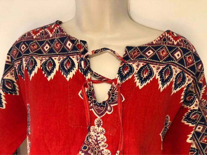 Je vends une tunique Fabrication artisanale Vintage Elle est vintage fabrication artisanale Elle est en très bon état L’étiquette de composition a été effacé avec le temps… Ainsi que la marque artisanale 152/E