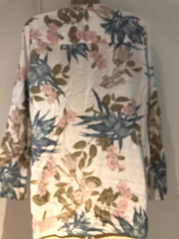 Je vends une tunique De la marque H&M Elle est en parfait état Taille 38 Largeur d’une épaule à l’autre 38 cm Largeur d’une épaule 10 cm Longueur d’une manche 60 cm Largeur sous les aisselles 55 cm Longueur milieu de l’épaule jusqu’en bas 67 cm Longueur milieu du dos jusqu’en bas 69 cm Chaque côté est fondu dans le bas sur environ 6 cm pour le dos et 4 cm pour le devant Composition 55 % viscose 45 % modal lavables à 30° 130 E