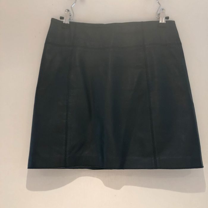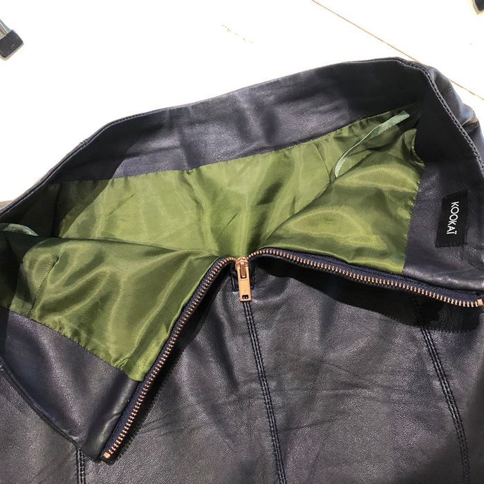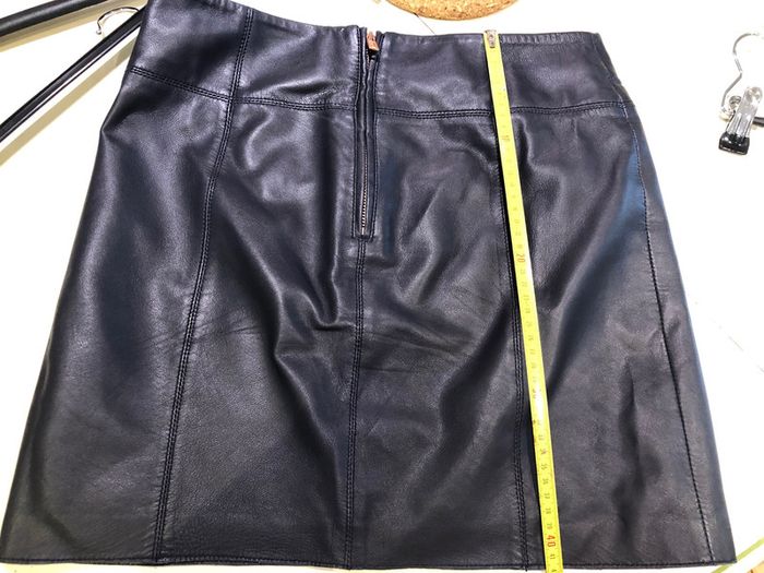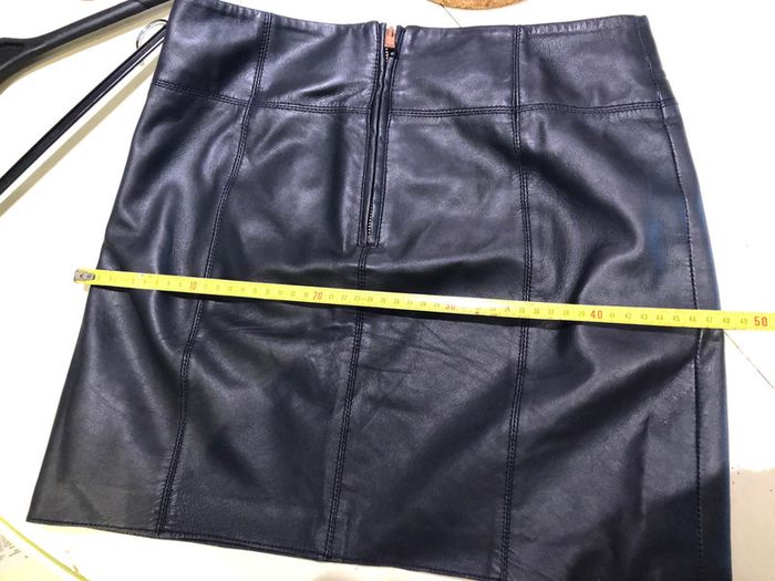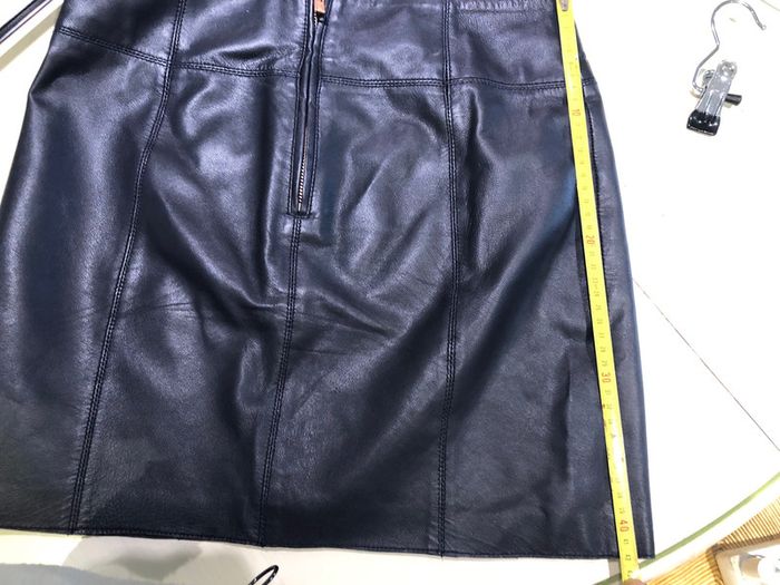 Jupe cuir de La marque kookaï taille 34 Cuir mouton Il est très souple on dirait presque de l’agneau Doublure 100 % polyester Les mesures sont sur les photos La jupe est en parfait état