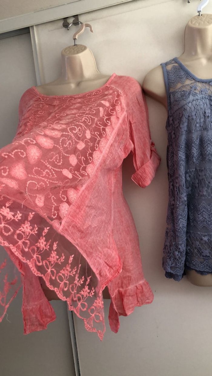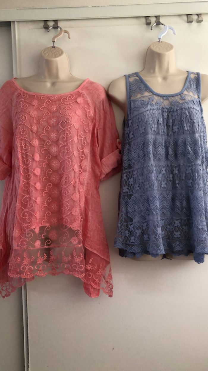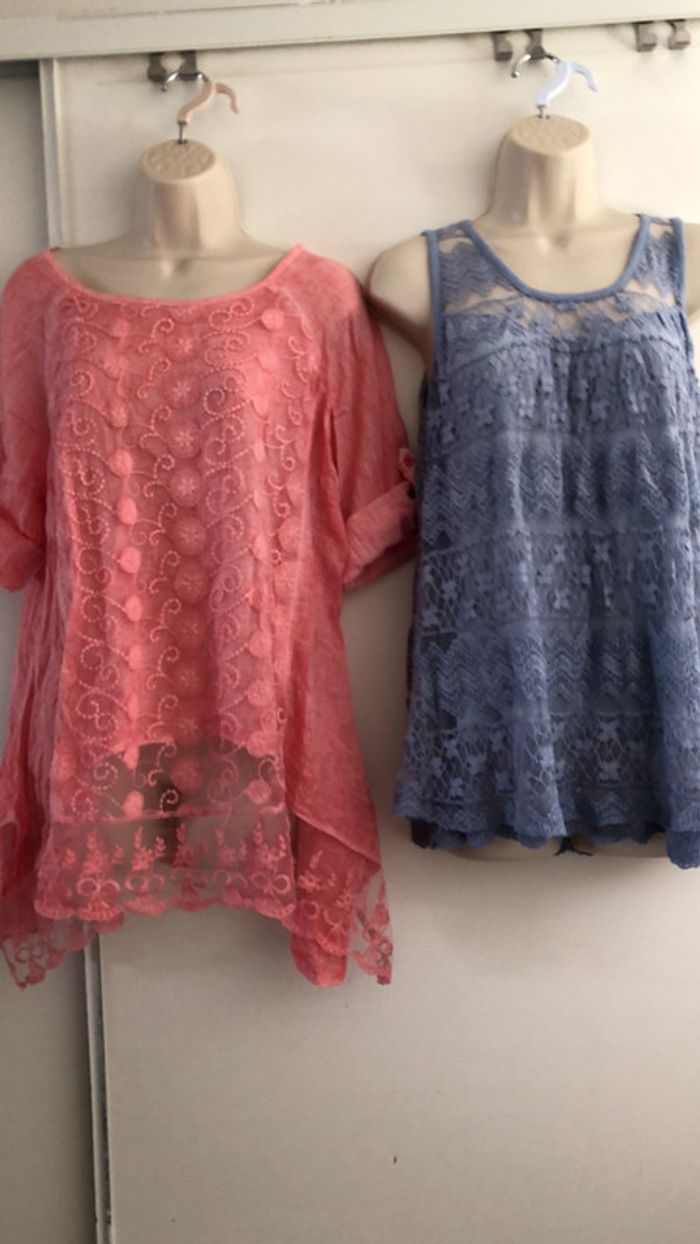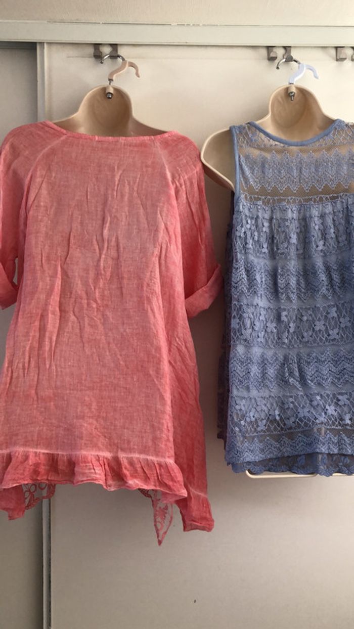 Je vends deux petites tuniques Made in Italy elles sont en très bon état toutes les deux. Elles pourront convenir du 36 pour celles qui aiment porter large au 42 largeur sous les aisselles de la tunique rose 60 cm Longueur milieu de l’épaule jusqu’en bas 73 cm Largeur sous les aisselles pour la tunique bleue 46 cm en tirant sur la matière celaMonte jusque 63 cm longueur milieu de l’épaule jusqu’en bas 68 cm