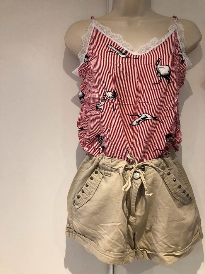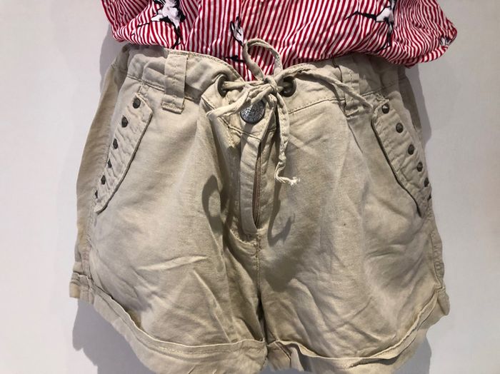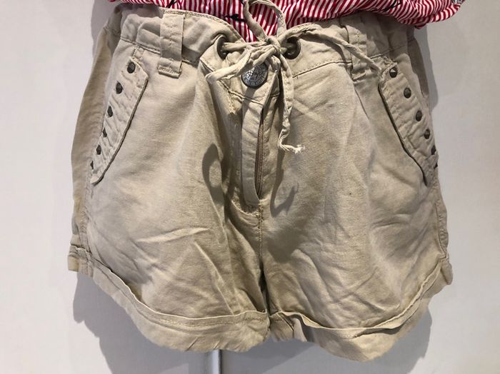 Je vends un short De la marquePimkie Taille 38 J’ai mis bon état parce que il y a une petit trou en haut de la poche de la fesse gauche Voir photo numéro 4 La couleur est bien représenté sur les photos d’autres photos ou renseignements sur demande. Lavables à 30° 46 % coton 54 % lin Longueur de la ceinture bouton fermé 41 cm Longueur de jambes sur le côté 30 cm Longueur de l’entre jambes 8 cm