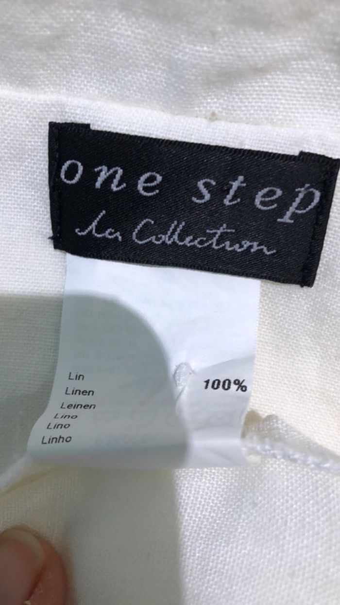 Je vends une petite veste Blazer De la marque one step Elle est en 100 % lin Couleur blanc cassé La couleur est plus blanc cassé crème elle est bien représenté sur le fond blanc en photo. Elle est neuve sans étiquette Les poches sont toujours cousu n’ont jamais été ouverte. Il y a un bouton de rechange à l’intérieur Trois petits boutons en extérieur Largeur d’une épaule à l’autre37 cm Largeur d’une épaule 10,5 cm Longueur d’une manche 57 cm Longueur milieu de l’épaule devant jusqu’en bas 57 cm Longueur milieu du dos jusqu’en bas 64 cm Largeur sous les aisselles est fermé 47 Cm D’autres renseignements et photos sur demande 320 B