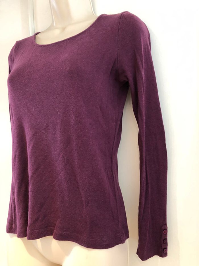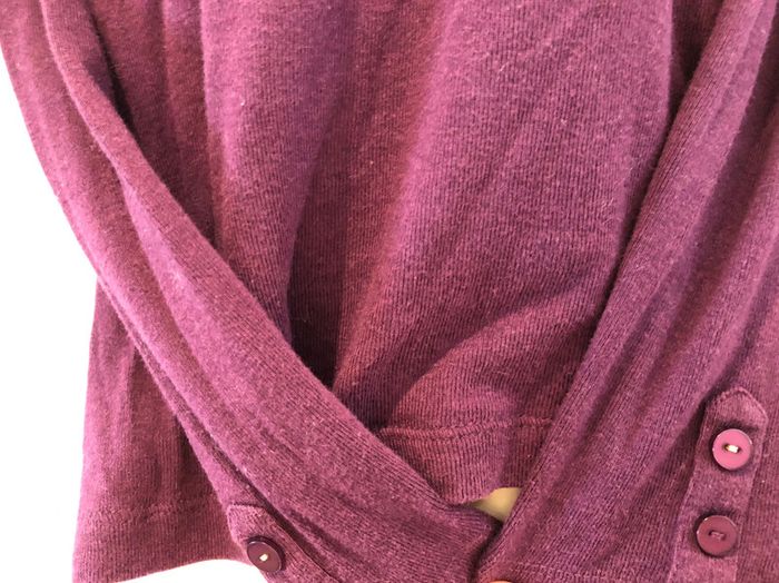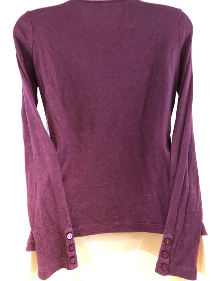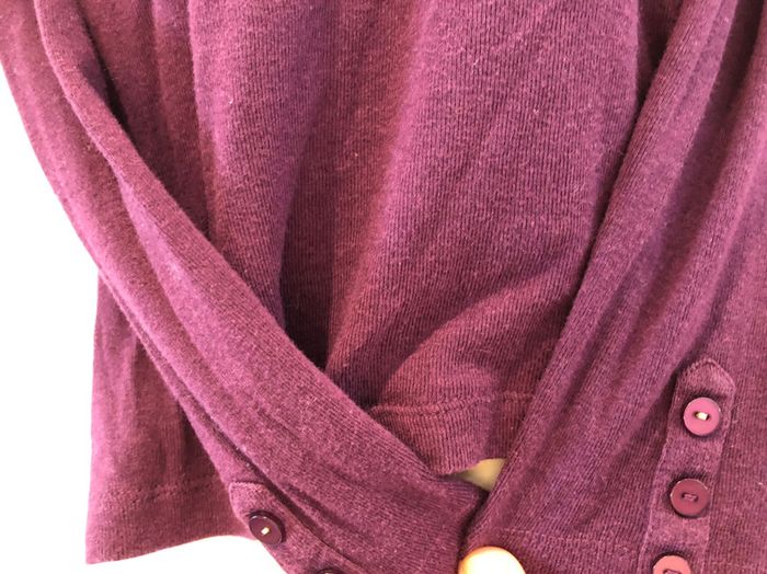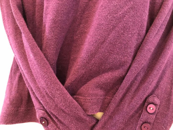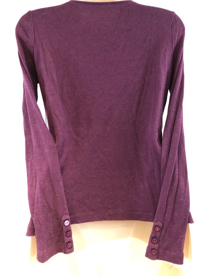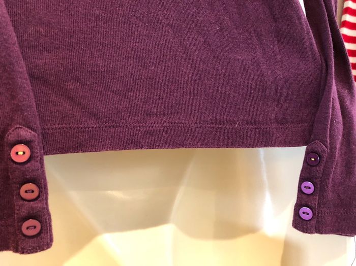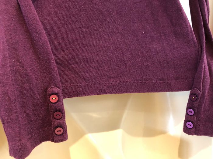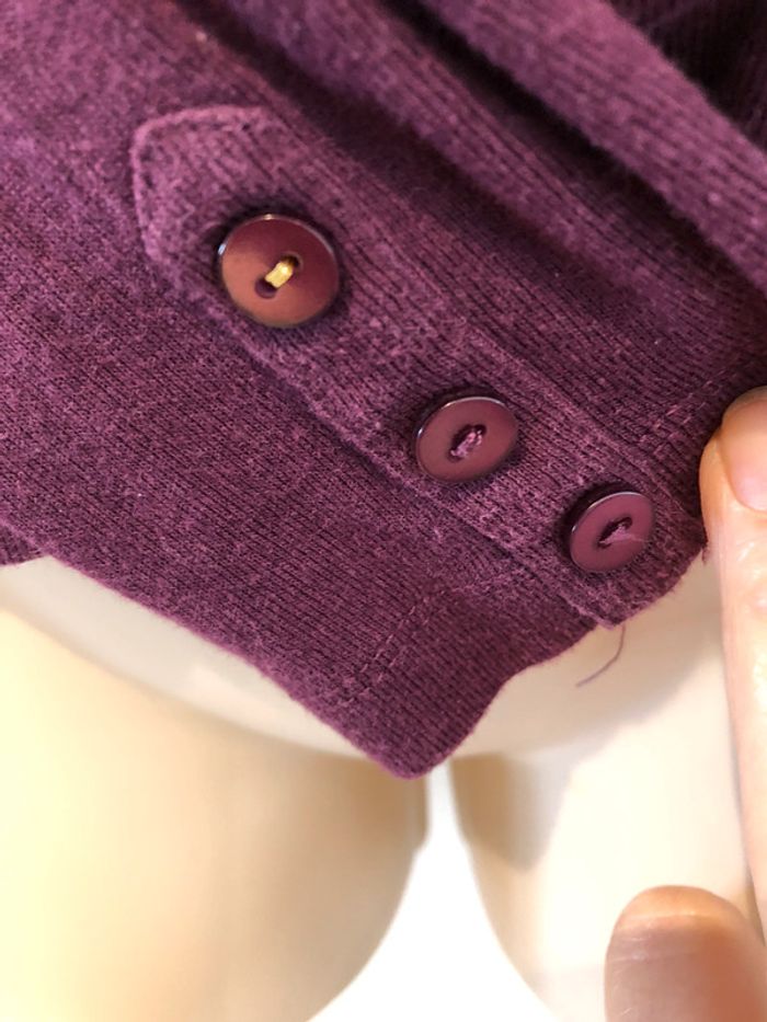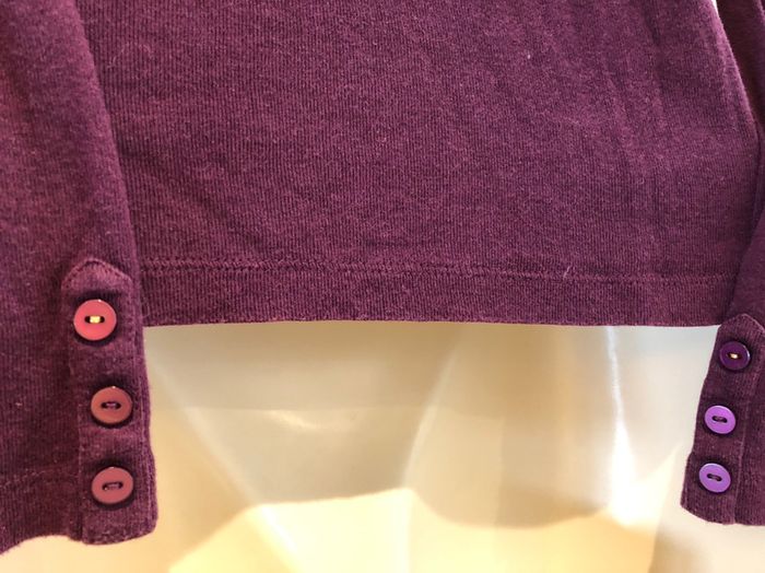 Trois petits boutons sur chaque manche dont un cousu au fil d’or Couleur violet aubergines