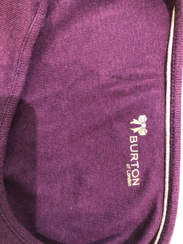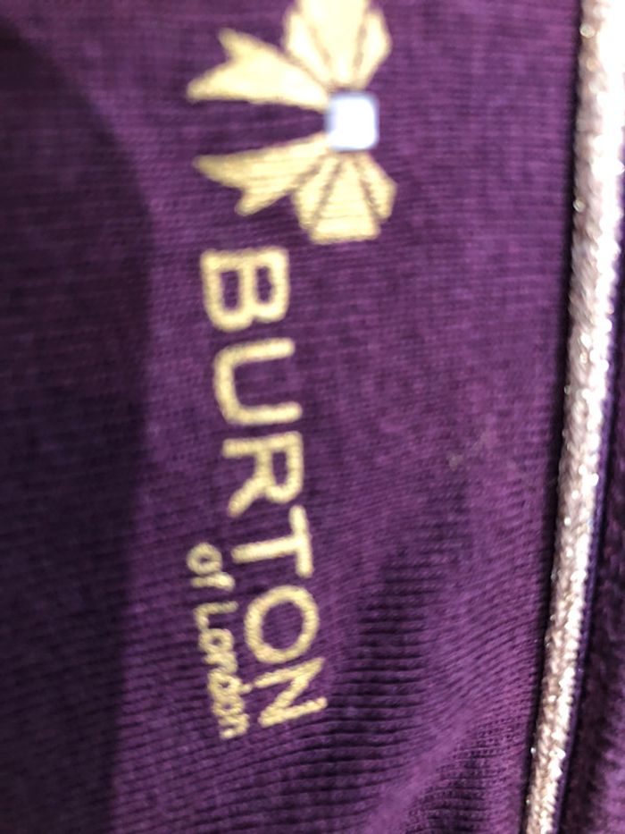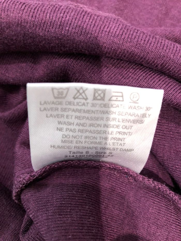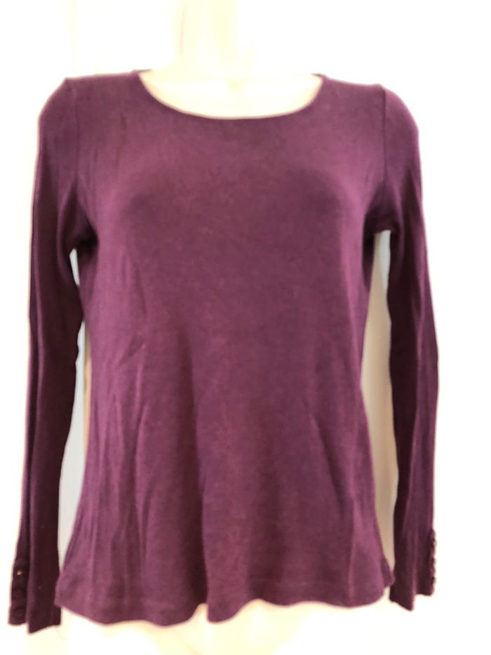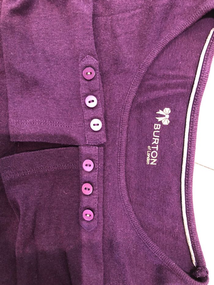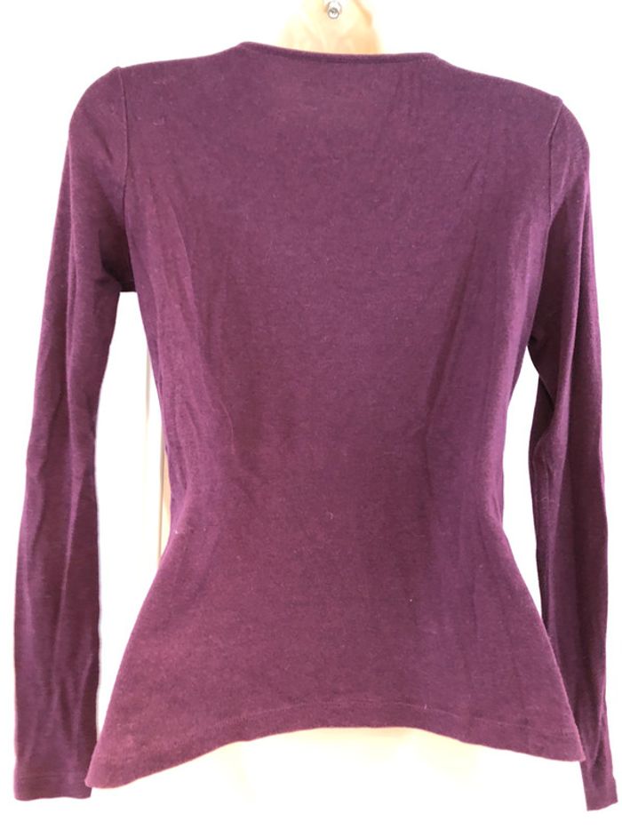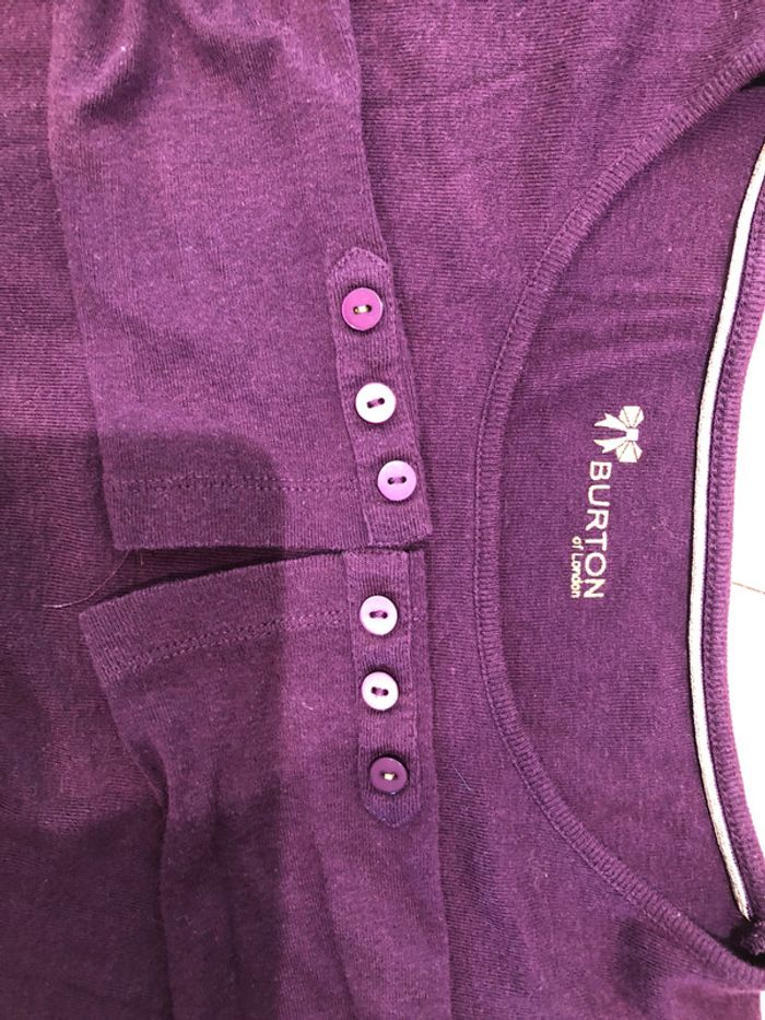 Trois petits boutons sur chaque manche dont un cousu au fil d’or Couleur violet aubergines