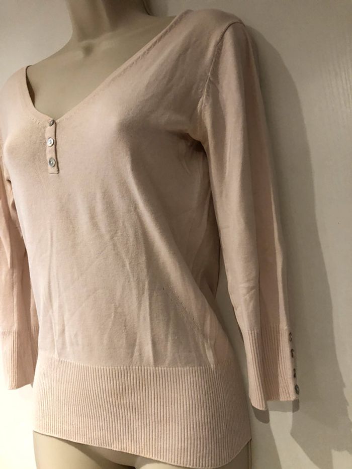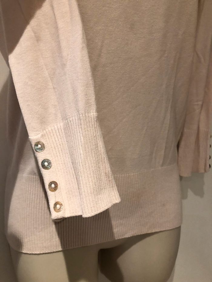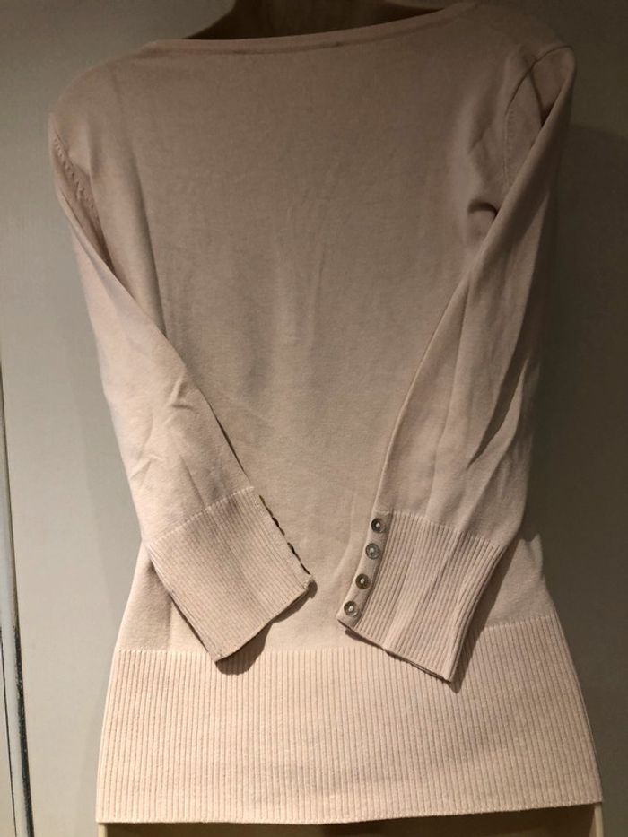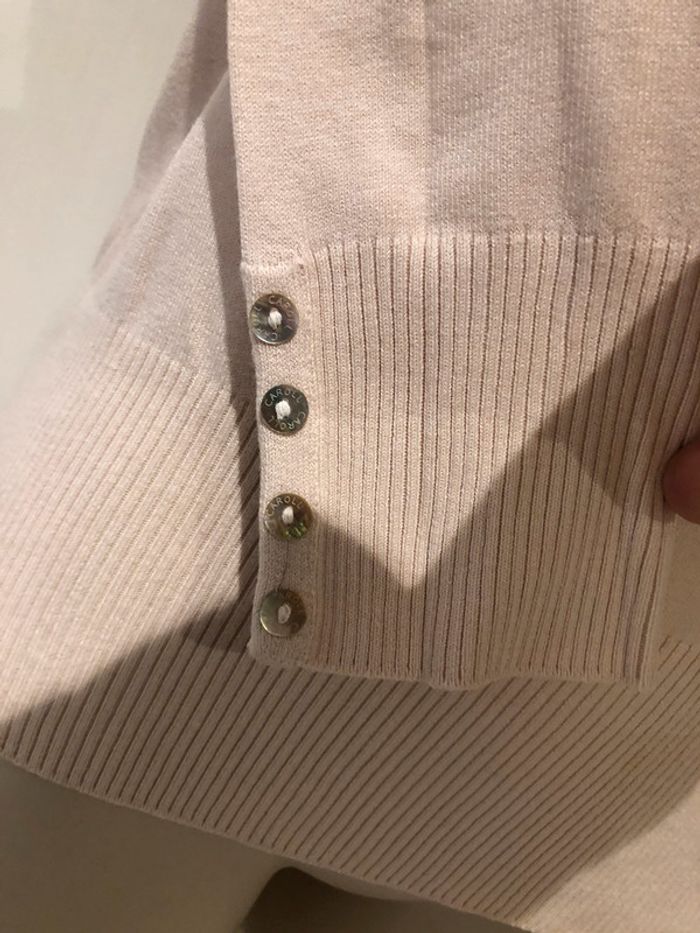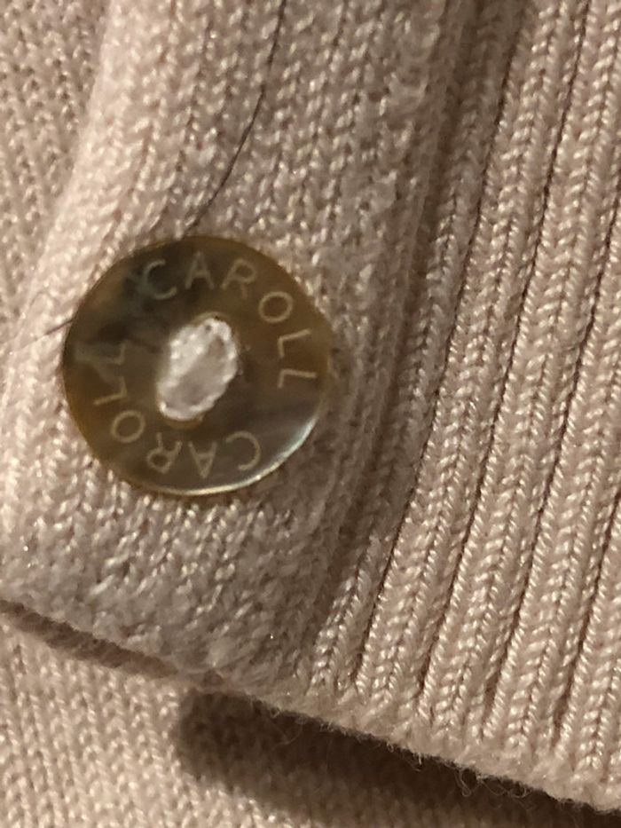 Je vends un petit pull De la marque Caroll Taille 36 Il est en très bon état Seul bémol en bas d’une manche près du bouton une maille a sauté elle a été recousu sur 0,5 mm sinon RAS Voir photo numéro cinq et six il est en parfait état d’autres photos et renseignement sur demande Le pull est élastique largeur sous les aisselles 47 cm Largeur d’une épaule à l’autre 39 cm Largeur d’une épaule colle compris 8 cm Longueur d’une manche 46 cm Longueur milieu de l’épaule devant jusqu’en bas 62 cm Longueur sous les aisselles jusqu’en bas 46 cm 163 C