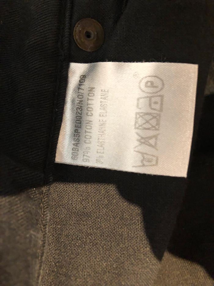 Je vends un pantalon de la marque Eden Park longueur de la ceinture 37 cm Mesure de l’entre jambes devant jusqu’en haut de la ceinture 22 cm Mesure de l’entre jambes jusqu’en haut De la ceinture dans le dos 33 cm Longueur de jambes côté intérieur aux informations ils sont 86 cm ce qui équivaut à environ une longueur de jambes 34 Longueur de jambes sur les côtés ceinture comprise 110 cm Largeur deux jambes en haut des cuisses 28 cm Largeur bas de pantalon 19 cm Comparer les mesures avec votre meilleur Pantalon il est en très bon état
