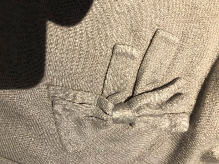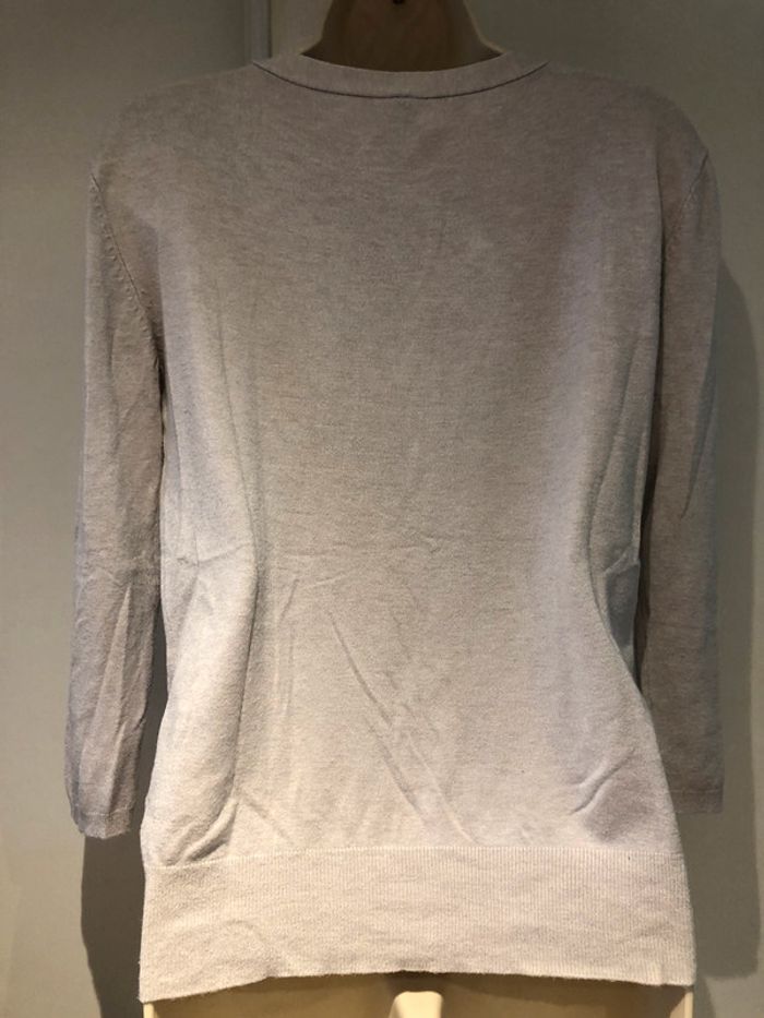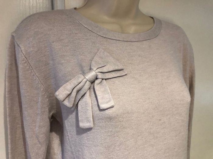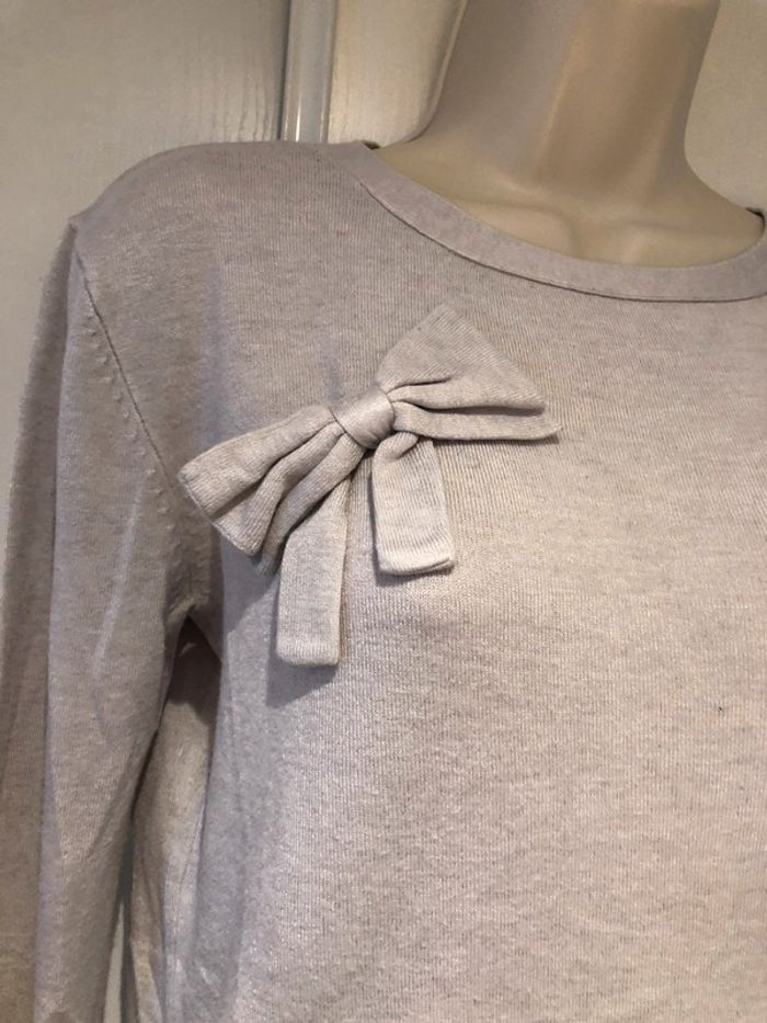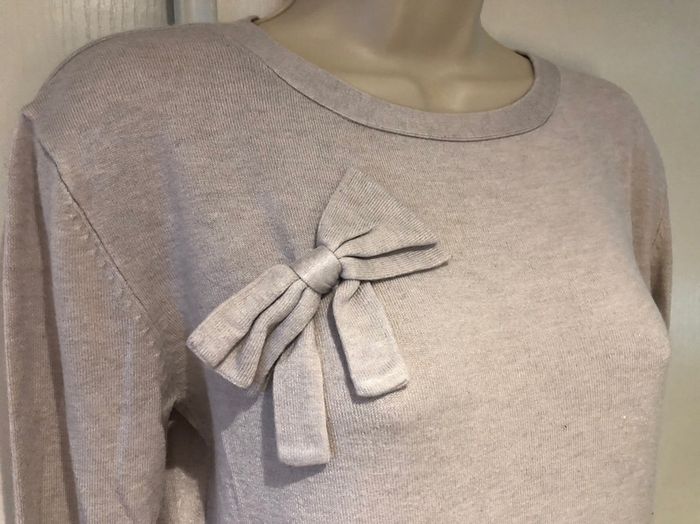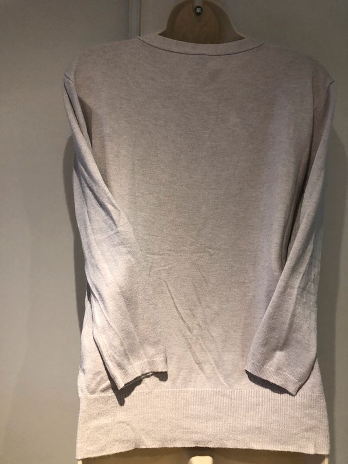 Je vends un petit pull gris Taille M De la marque 99 Il est en parfait état Il y a un petit nœud de papillon sur la poitrine droite Largeur sous les aisselles 49 cm Largeur d’une épaule 10 cm largeur d’une épaule col compris 12 cm longueur d’une manche 48 cm Longueur milieu de l’épaule jusqu’en bas 60 cm Largeur bas de Pull 38 cm 210/c