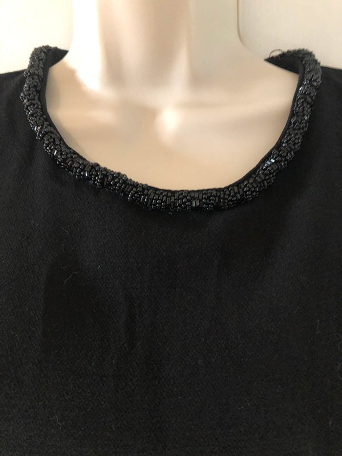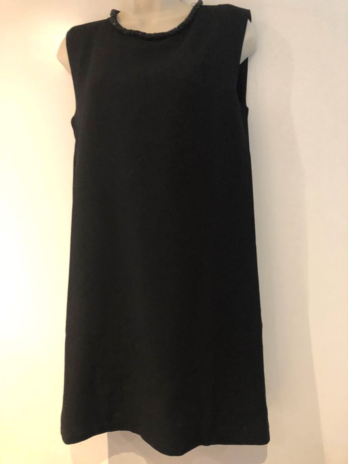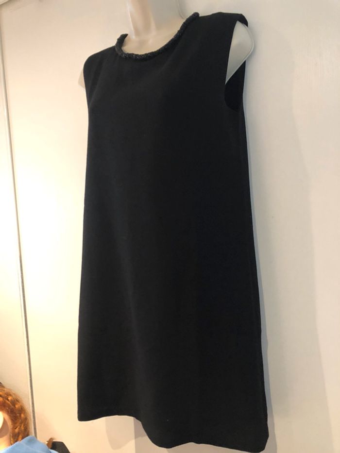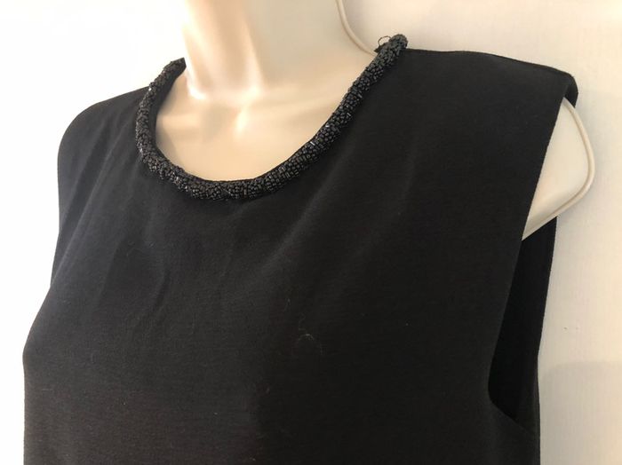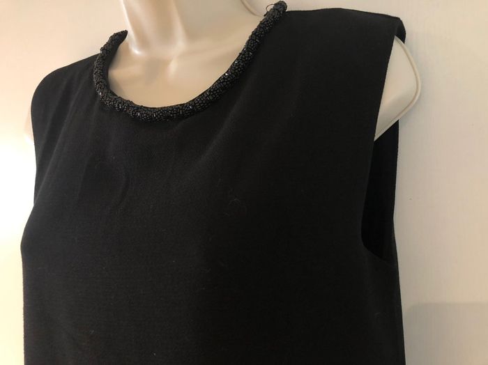 je vends une petite robe noire en parfait état De la marque suncoo Modèle Carola Elle est en taille 1 Elle est encore en vente à soldé à 70 € sur certains sites vendeur. Suncoo Robe droite épaulée col perlé Largeur d’une épaule à l’autre 36 cm Largeur d’une épaule 10 cm 1,5 cm de perles en plus Largeur sous les aisselles 45 cm sans tirer sur la matière longueur milieu de l’épaule jusqu’en bas 82 cm Longueur sous les aisselles jusqu’en bas 61,5 cm Longueur milieu du dos jusqu’en bas 84 cm Largeur bas de robe 50 cm largeur aux environs de la taille 46,5 cm D’autres photos et renseignements Sur demande sur le site de la marque vous pouvez prendre vos mesures les rentrer sur le site pour trouver votre taille idéale voir si cela correspond Avec la robe.