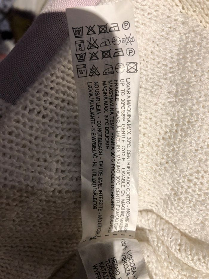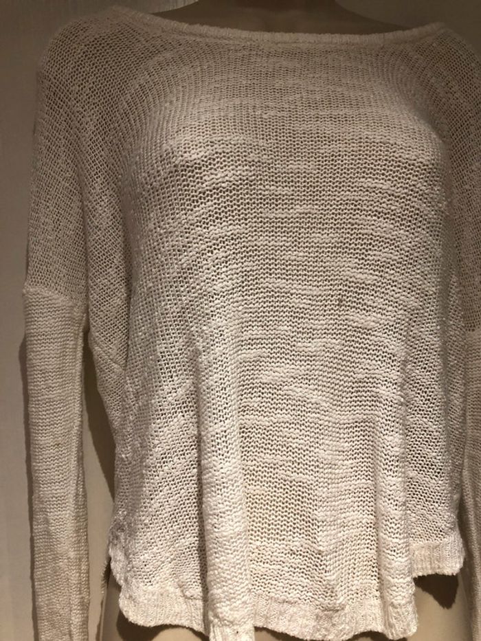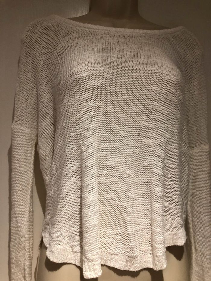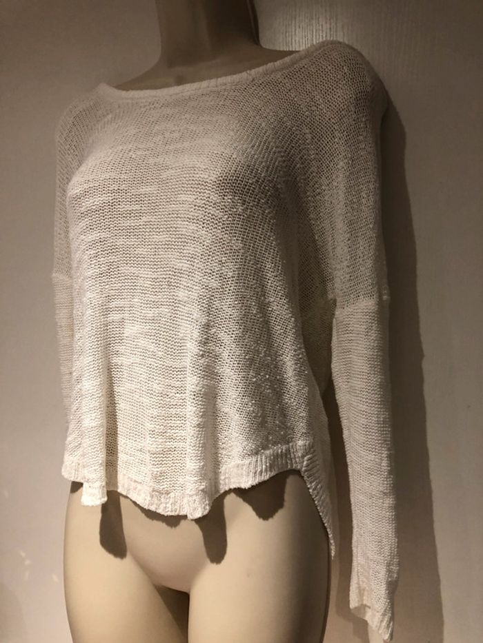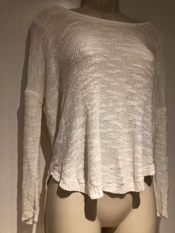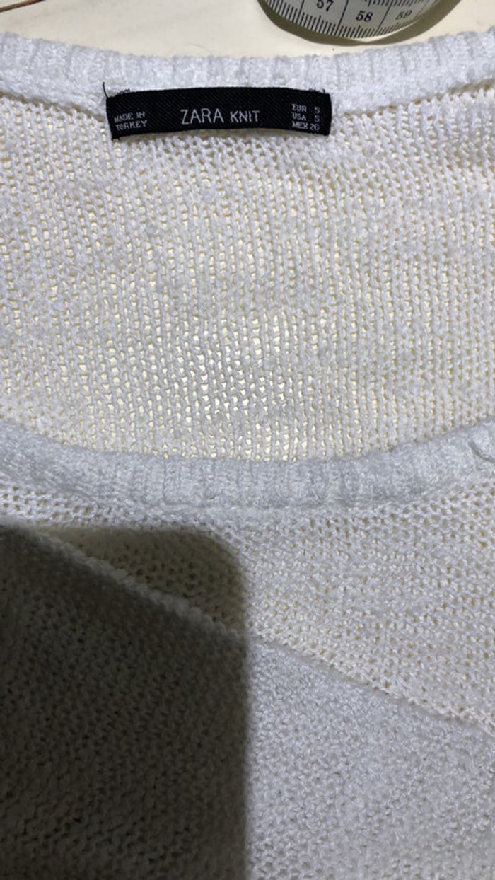 Je vends un petit pull blanc De la marque Zara Taille S Il est en très bon état les manches sont fines les épaules descendent le long des manches Largeur sous les aisselles 61 cm Longueur d’une épaule 20 cm Longueur d’une manche 37 cm Longueur milieu de l’épaule devant jusqu’en bas 49 cm Longueur milieu du dos jusqu’en bas 49 cm D’autres photos et renseignement sur demande 275/c