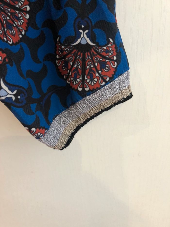 Je vends une petite blouse de la marque Mango elle est en taille M elle est en bon état général J’ai mis bon état parce que le bas de manche n’est plus en aussi bon état que le chat il reste tout de même très bien pour être porté voir la photo 5. Sinon R.A.S. A