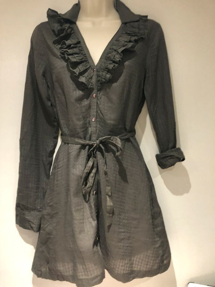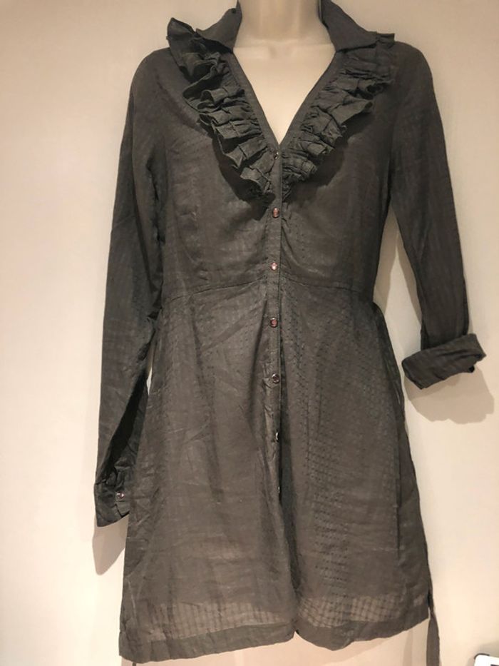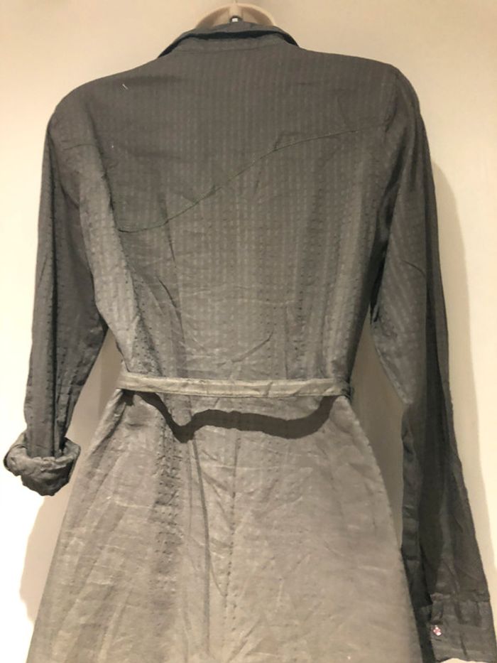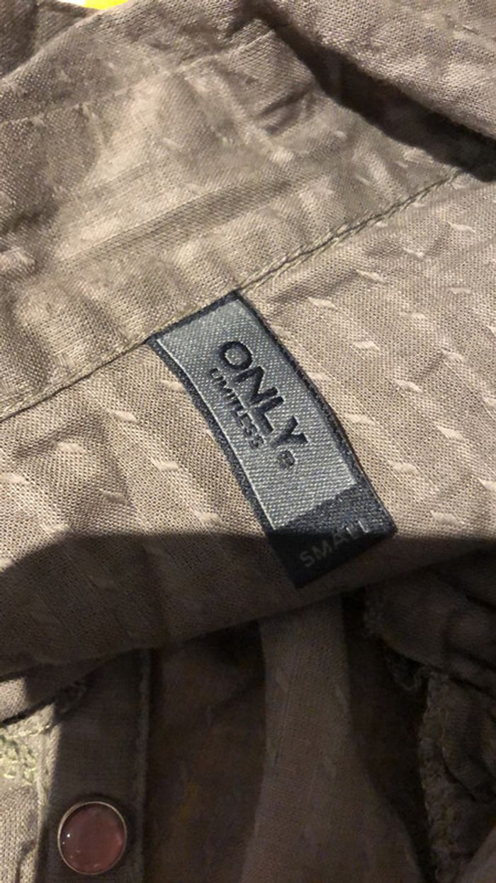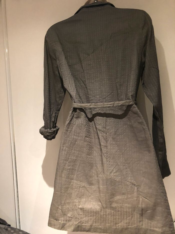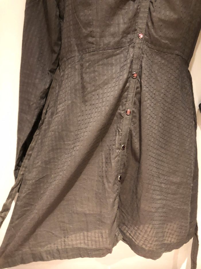 Je vends une robe kaki De la marque only Taille Small Elle est en parfait état Les manches sont rétractables Elle possède une ceinture si on veut la porter avec. La robe se ferment avec des pressions largeur sous les aisselles 47 Largeur d’une épaule à l’autre38 Largeur d’une épaule. 10 Longueur milieu de l’épaule devant jusqu’en bas80 Longueur d’une manche. 62 cm Largeur au niveau de la ceinture 37 cm Largeur bas de robe 60 cette dernière est fendue sur le milieu bas sur 7,5 cmJusqu’au bouton pression L’étiquette de composition et entretien a été coupé je pense que c’est un coton. la Robe est comme neuve