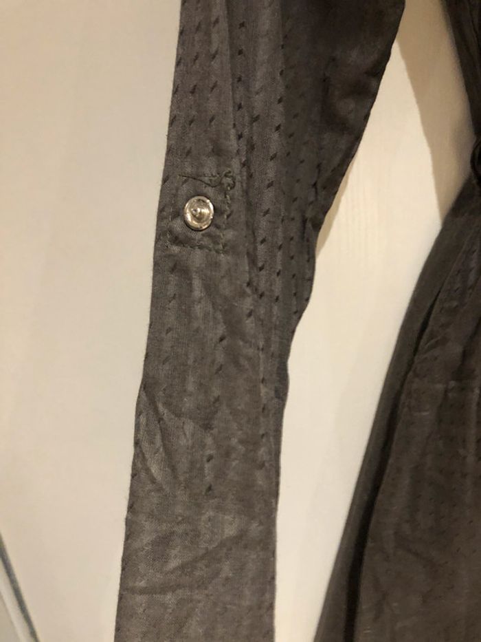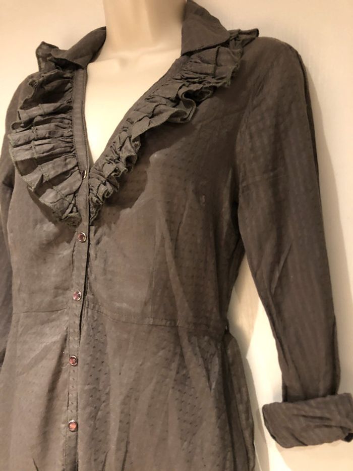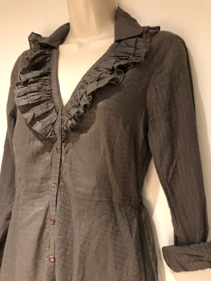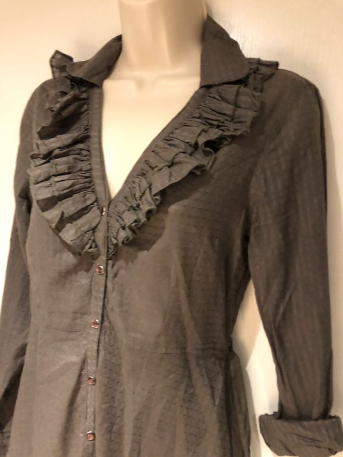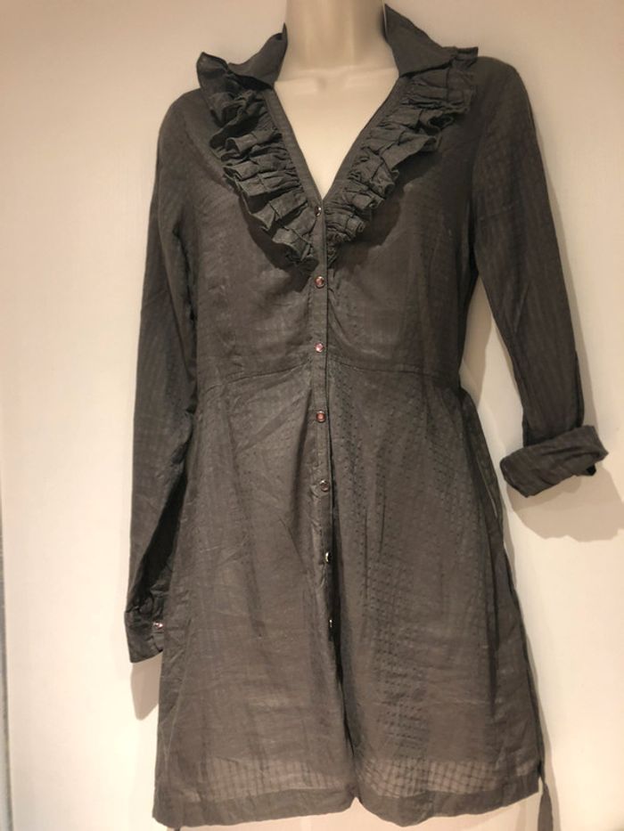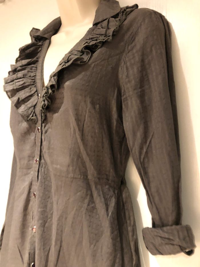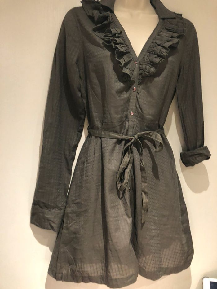 Je vends une robe kaki De la marque only Taille Small Elle est en parfait état Les manches sont rétractables Elle possède une ceinture si on veut la porter avec. La robe se ferment avec des pressions largeur sous les aisselles 47 Largeur d’une épaule à l’autre38 Largeur d’une épaule. 10 Longueur milieu de l’épaule devant jusqu’en bas80 Longueur d’une manche. 62 cm Largeur au niveau de la ceinture 37 cm Largeur bas de robe 60 cette dernière est fendue sur le milieu bas sur 7,5 cmJusqu’au bouton pression L’étiquette de composition et entretien a été coupé je pense que c’est un coton. la Robe est comme neuve