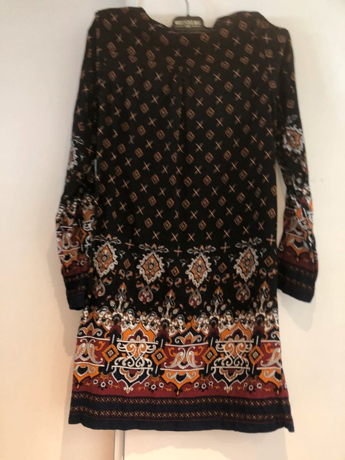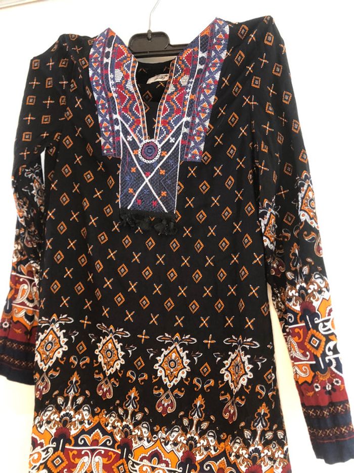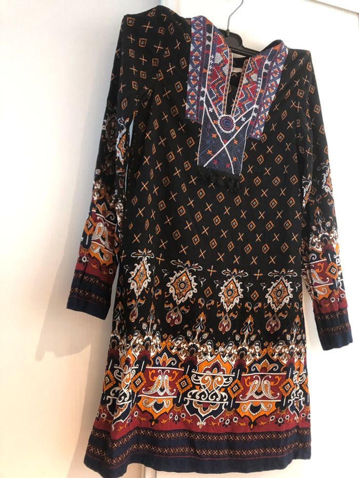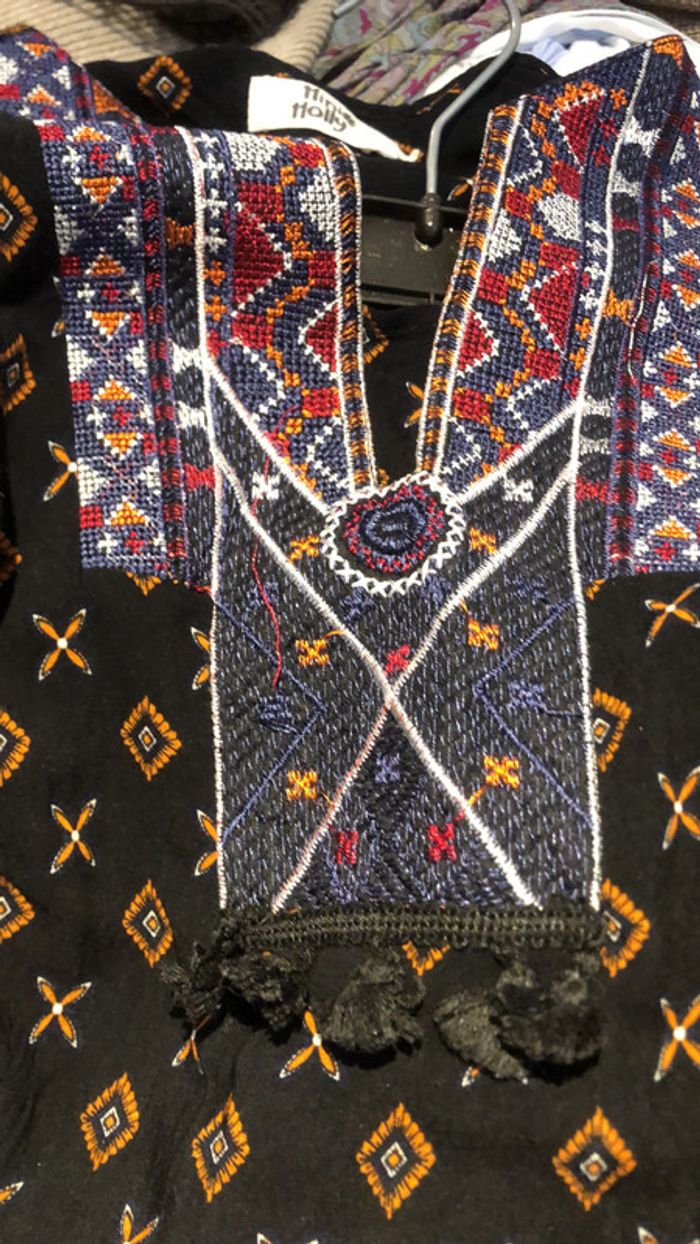 je vends une tunique de la marque mini Molly Elle est en parfait état il y a des broderie sur le devant des petits pompons dans le bas de l’encolure taille 10 11 ans Largeur d’une épaule à l’autre 33 cm Largeur d’une épaule 7 cm Longueur d’une manche 53 Largeur sous les aisselles 39 cm Longueur milieu de l’épaule jusqu’en bas 76 A