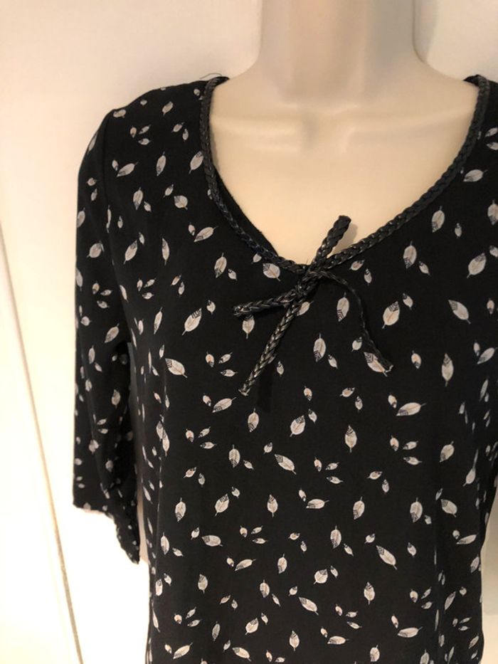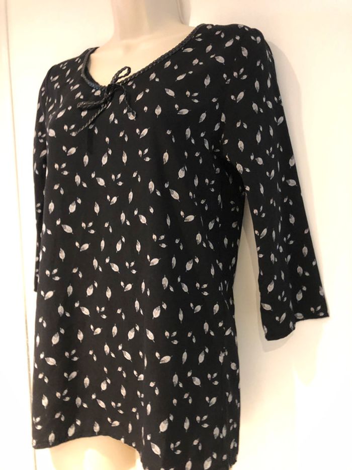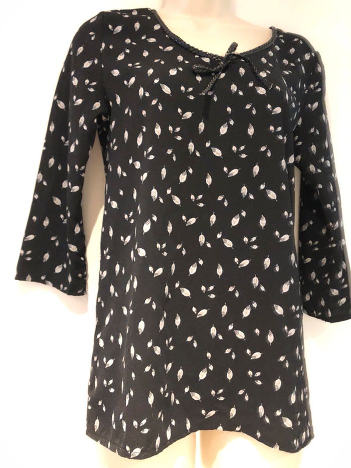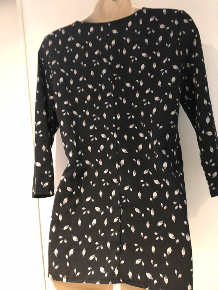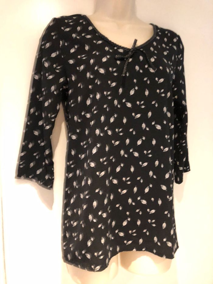 Je vends une petite tunique de la marque Agathe Velmont Elle est en parfait état comme neuf Taille un Elle est noir avec des petites plumes tirants sur le gris très clair Il n’y a pas besoin de repassage lavables à 30° 100 % polyester Largeur sous les aisselles 44 cm Largeur d’une épaule 9,5 cm Longueur d’une manche 43,5 cm Largeur bas de Cunette 44,5 cm Longueur une épaule jusqu’en bas 65 cm A