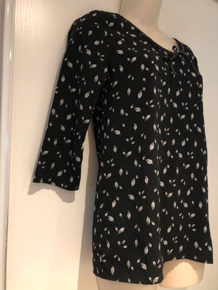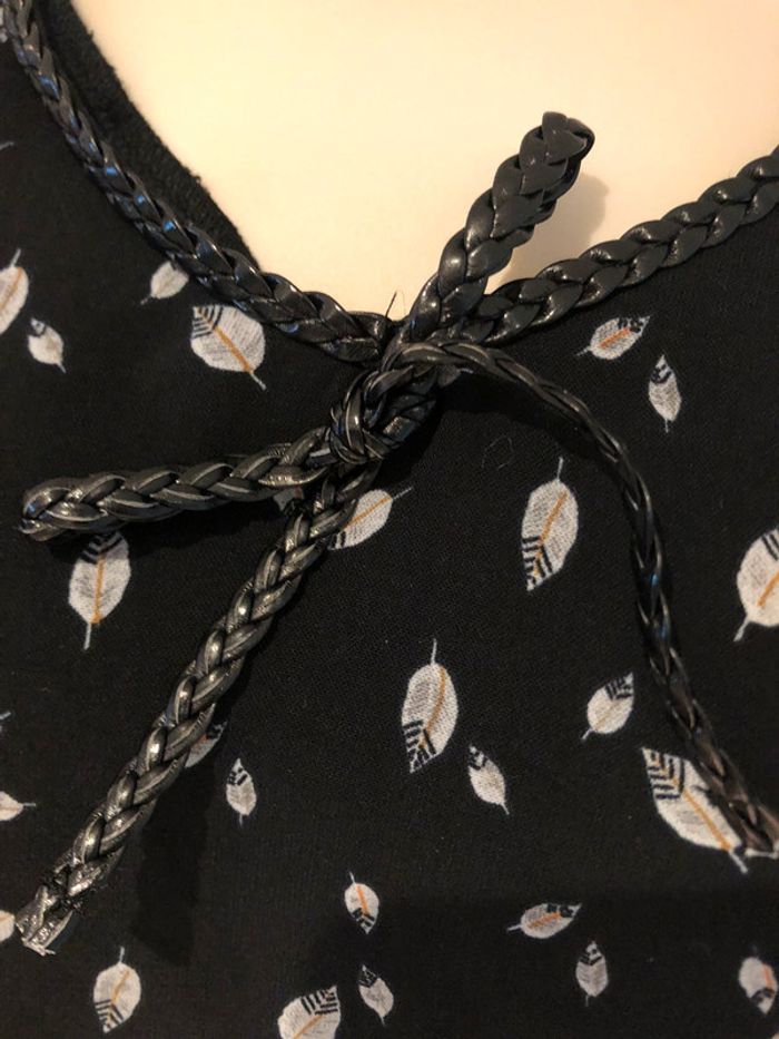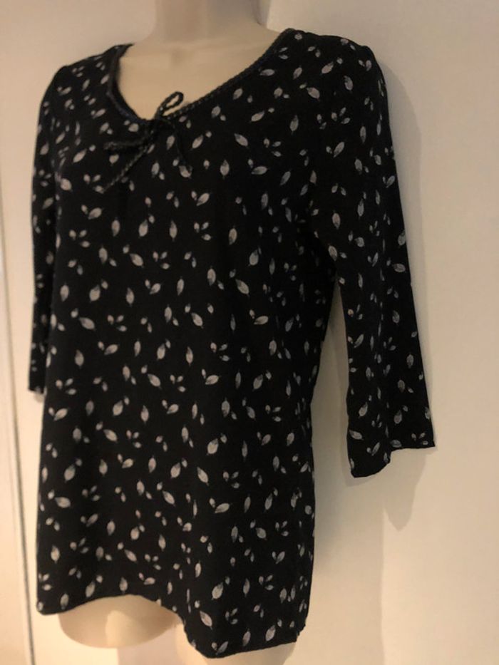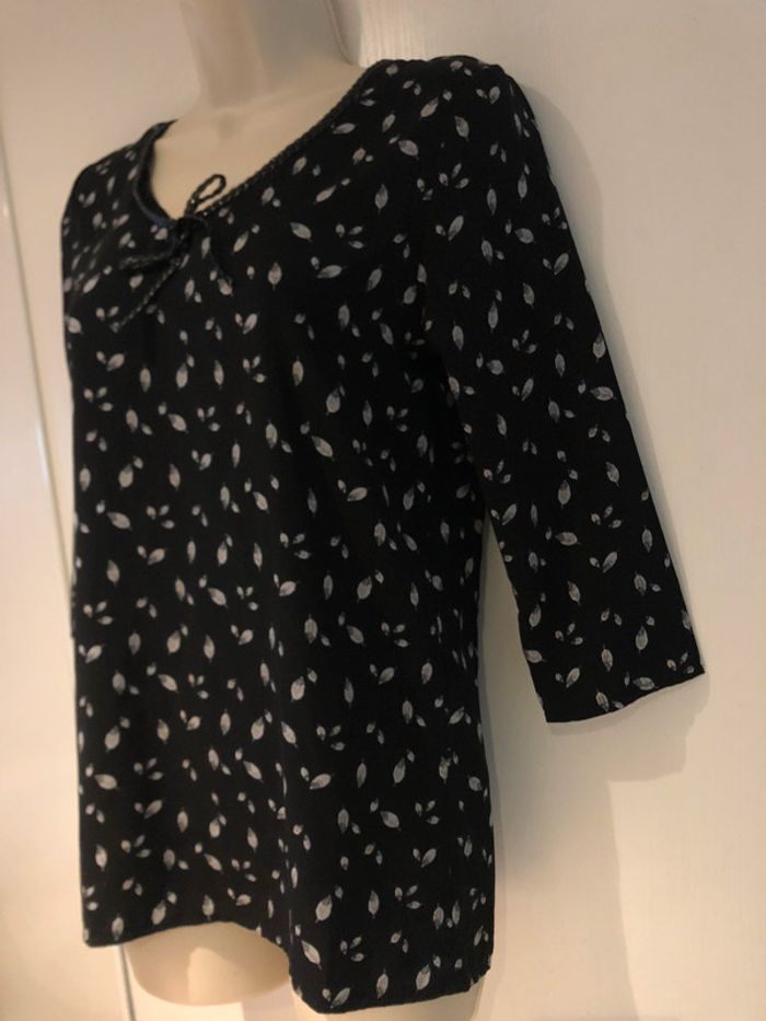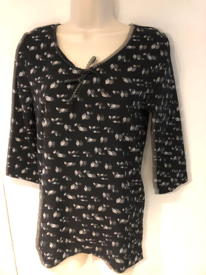 Je vends une petite tunique de la marque Agathe Velmont Elle est en parfait état comme neuf Taille un Elle est noir avec des petites plumes tirants sur le gris très clair Il n’y a pas besoin de repassage lavables à 30° 100 % polyester Largeur sous les aisselles 44 cm Largeur d’une épaule 9,5 cm Longueur d’une manche 43,5 cm Largeur bas de Cunette 44,5 cm Longueur une épaule jusqu’en bas 65 cm A