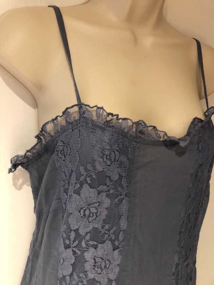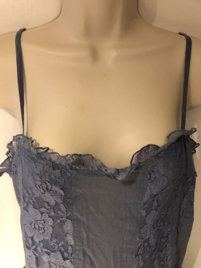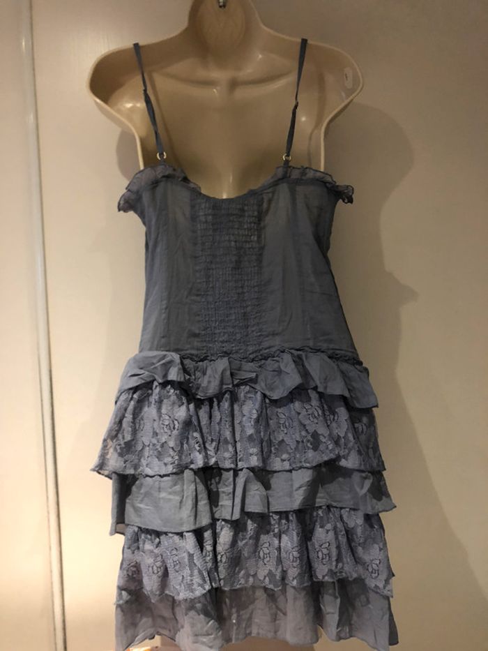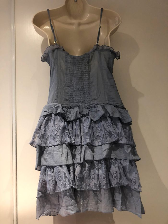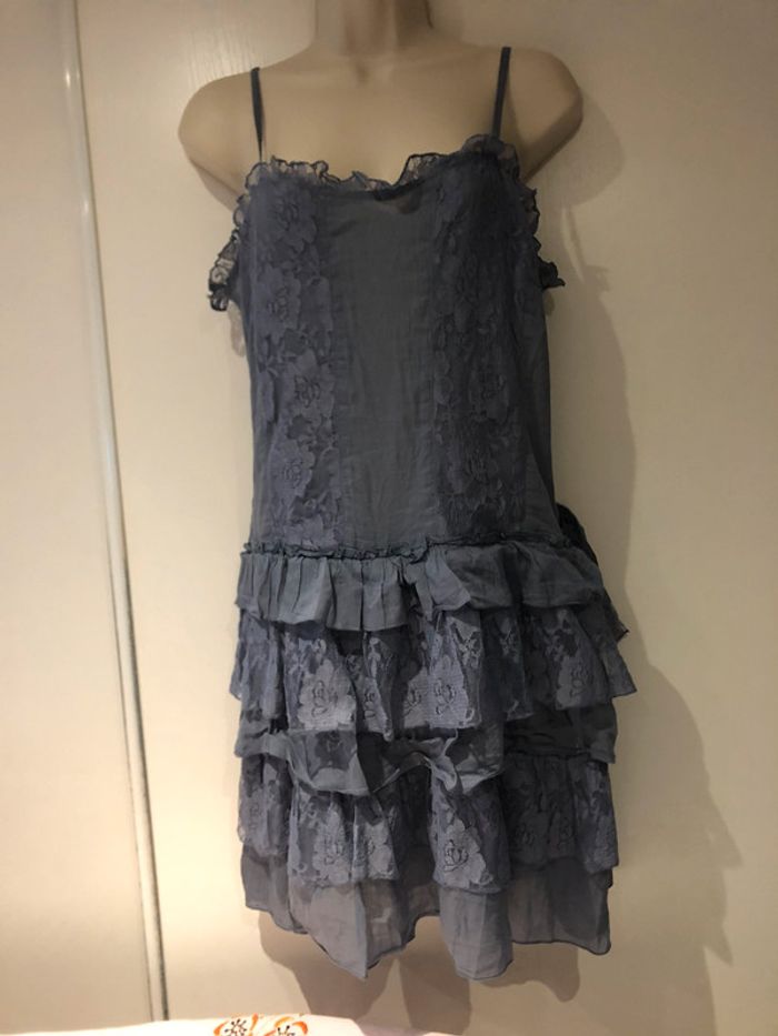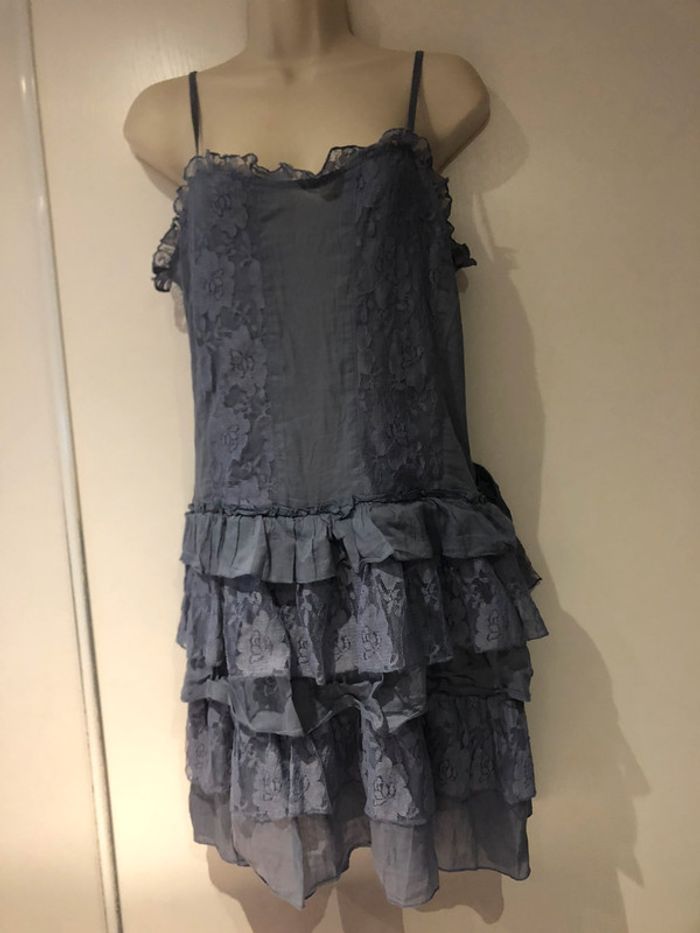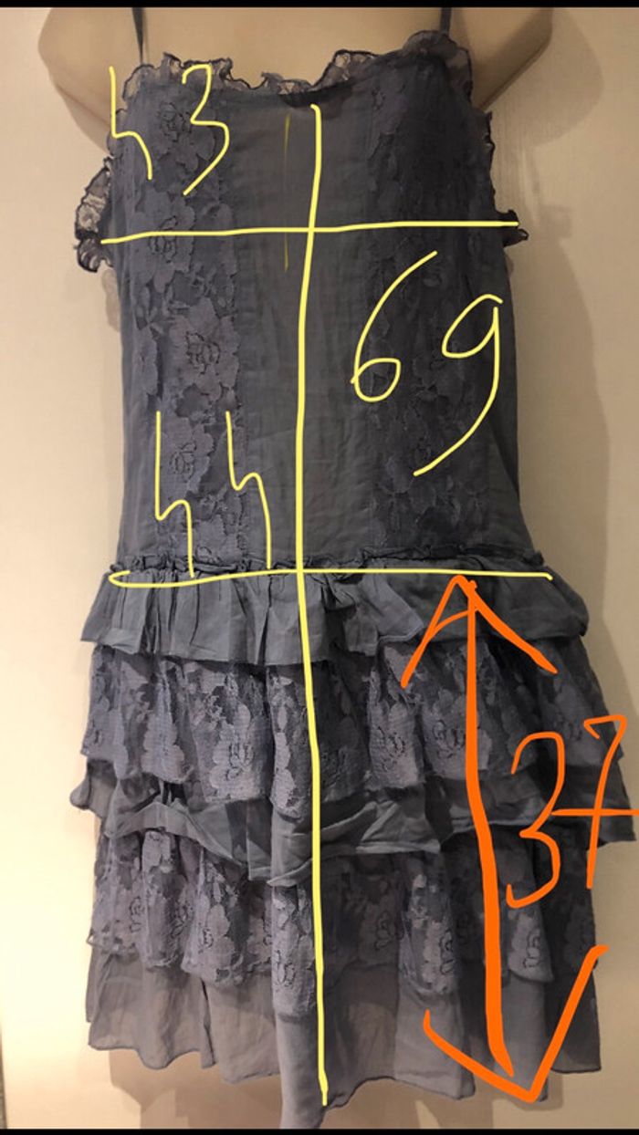 Je vends une petite robe style bohème gris bleu de la marque vila . Elle est neuve elle a toujours son étiquette cartonnée dans le dos. Le dos est élastique sur une bande de 10 cm sur 23 . cela donne plus d’amplitude pour la poitrine. Photo numéro cinq. Les mesures de la robe sont donnés sur la photo numéro quatre. Elle possède une longue fermeture à glissière sur le Côté gauche. La couleur est un mélange de gris bleu… Elle est bien représenté sur la photos N•2