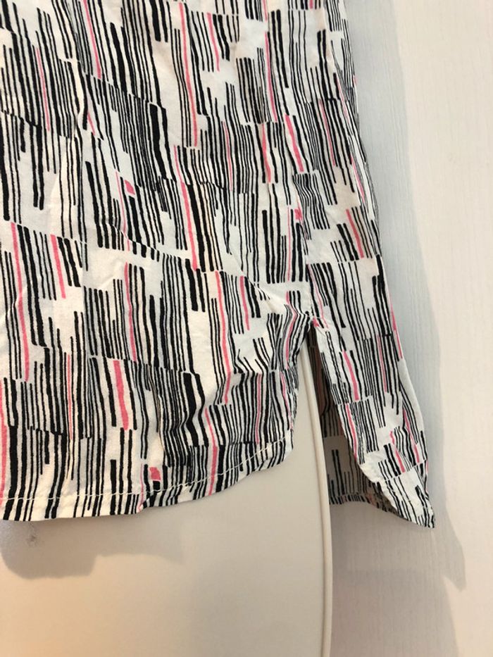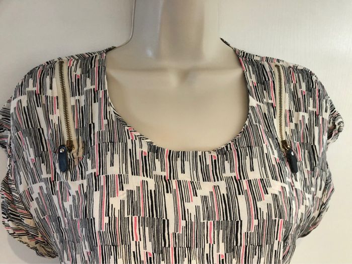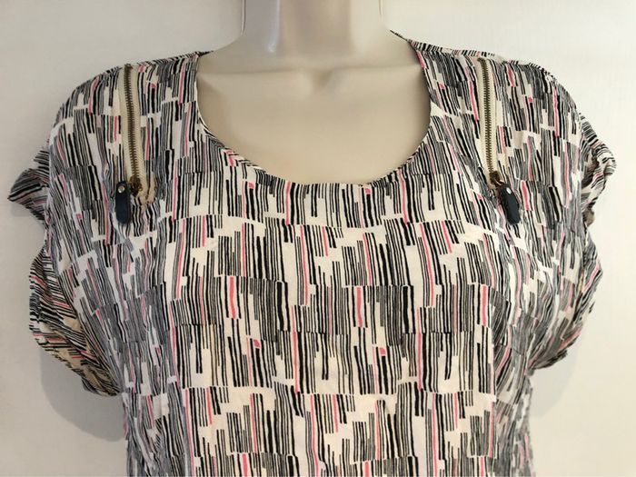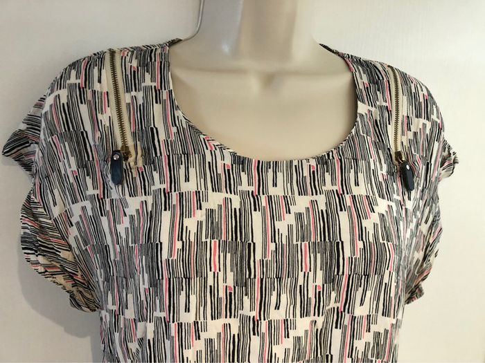 Je vends une petite tunique Véro Moda en taille S l’étiquette de composition a été coupé Largeur sous les aisselles 48 cm longueur milieu de l’épaule jusqu’en bas 54 cm Milieu del’épaule dos jusqu’en bas 63 cm Chaque côté est fondu le devant et le dos sont arrondis dans le bas. A