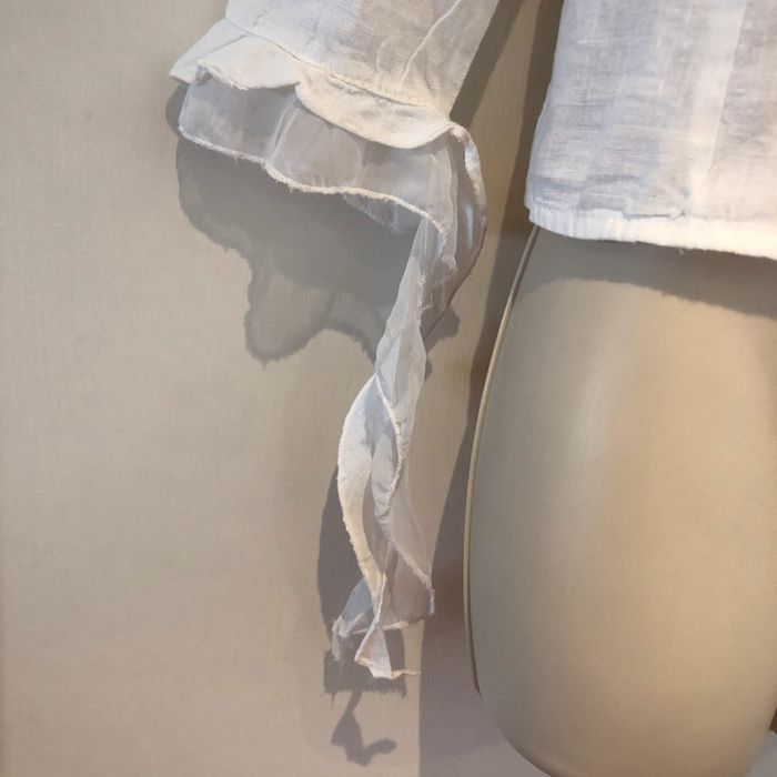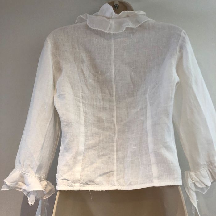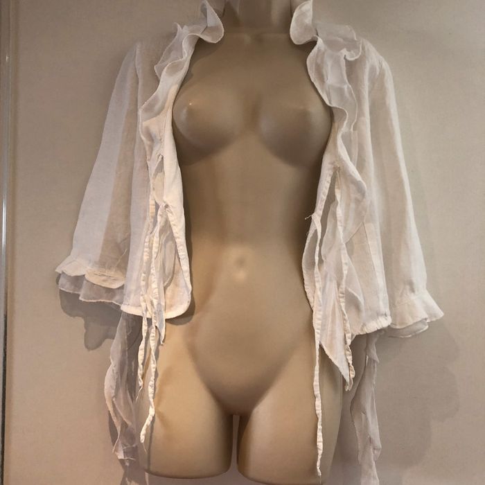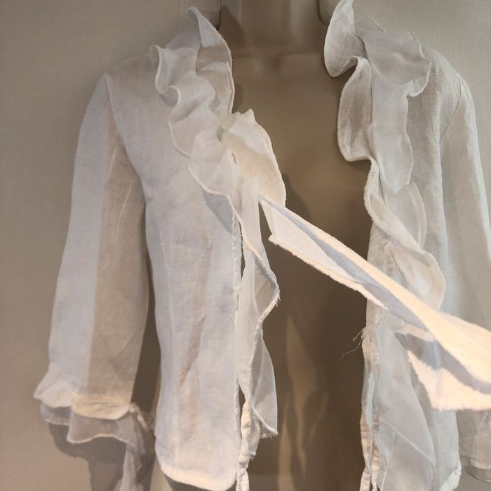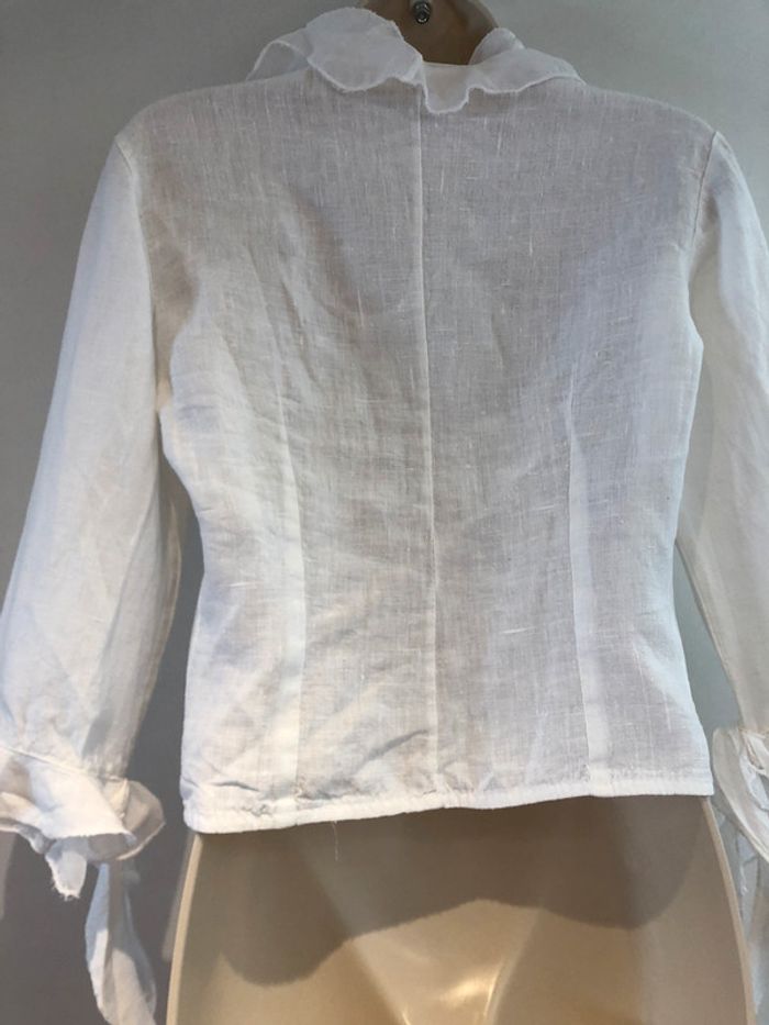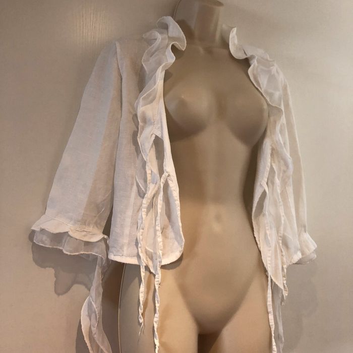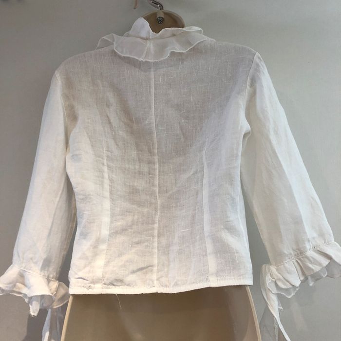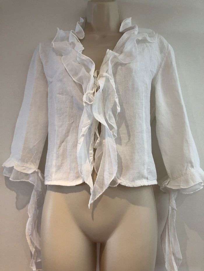 je vends une veste lin blanche taille M elle est en très bon état,l’étiquette de marque est partie et à laissé une trace visible uniquement au Col à l’intérieur sinon RAS A