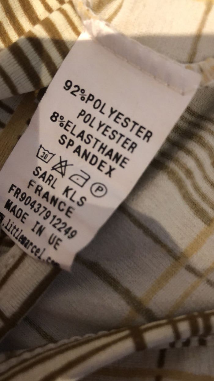 je vends une petite robe de la marque Little Marcel elle est en très bon état elle est en taille largeur sous les aisselles s’en tirer sur la matière 43 cm Largeur bas de robe 48 cm longueur milieu devant jusqu’en bas 79 cm Longueur milieu du dos jusqu’en bas 83 cm La robe est élastique composition 92 % polyester 8 % élasthane lavables à 30°
