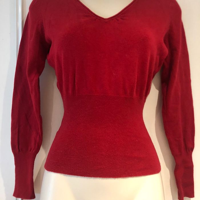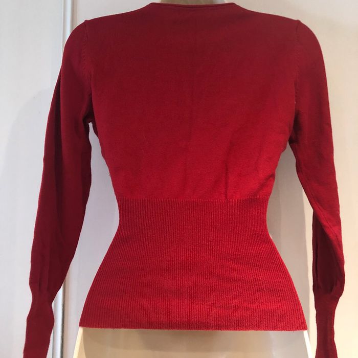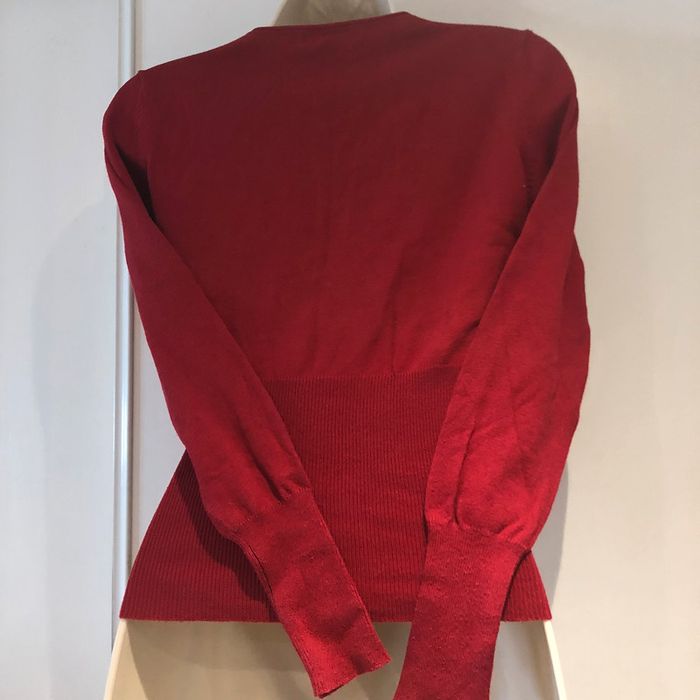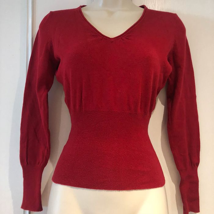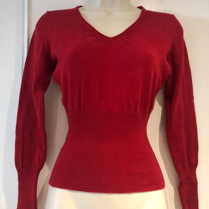 #mademoiselle29120taille34 Je vends un pull rouge de la marque Promod en taille 34. Largeur d’une épaule à l’autre 34 cm Largeur sous les aisselles 45 cm largeur d’une épaule 8 cm Longueur d’une manche 59 cm longueur milieu de l’épaule jusqu’en bas 51 cm Il est en bon état l’étiquette de composition a été coupé il doit être en coton mélangé avec élasthane lavables à 30° 140/ Orange13