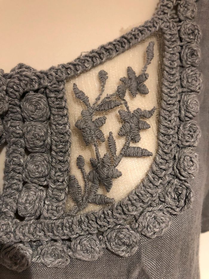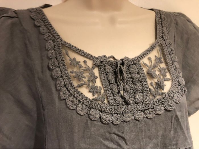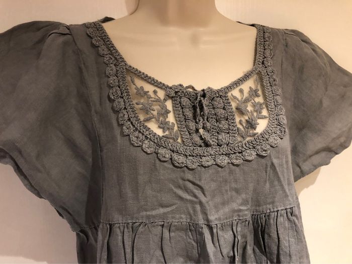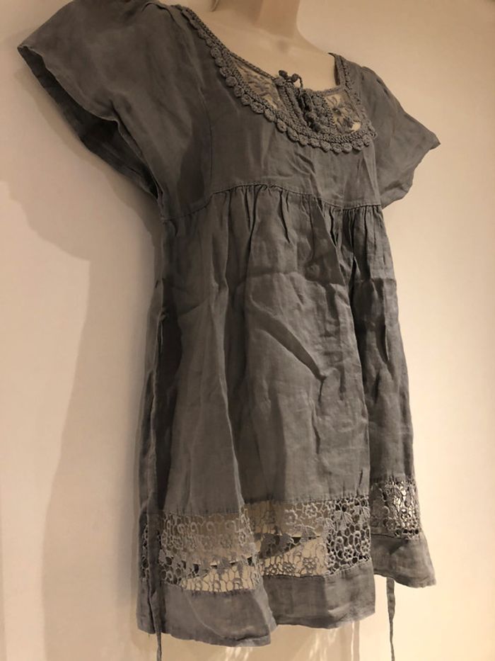 #mademoiselle29120tailleS je vends une tunique grise elle est en très bon état de la marque Made in Italy Elle est en lin longueur milieu du dos jusqu’en bas 74 cm Longueur milieu devant jusqu’en bas 61 cm Longueur de manche 20 cm Largeur sous les aisselles devant et derrière en même temps 82 cm A