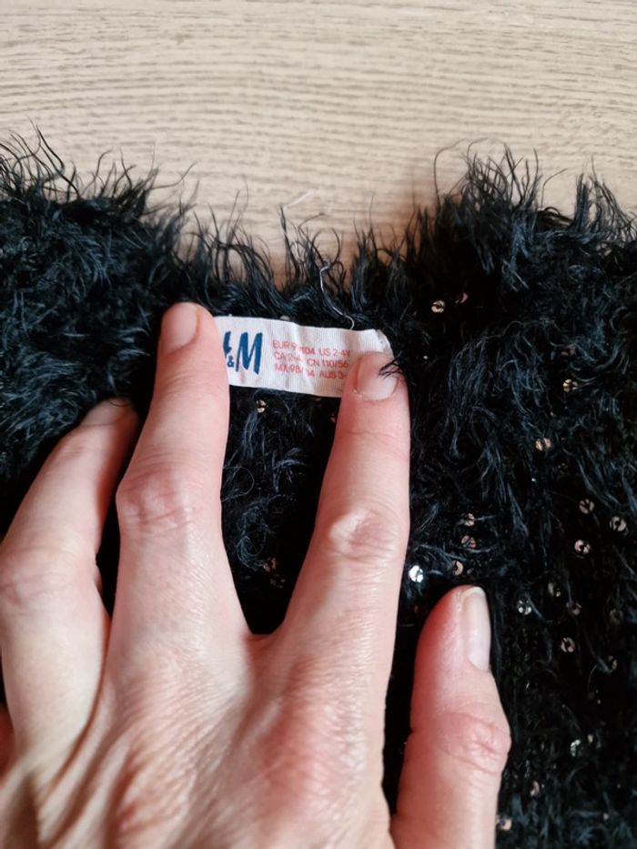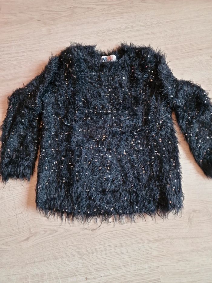 Joli pull noir et sequins. Taille indiquée 2/4ans mais taille très grand. Tres Bon état peu porté