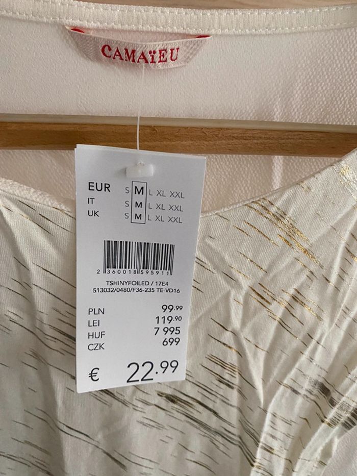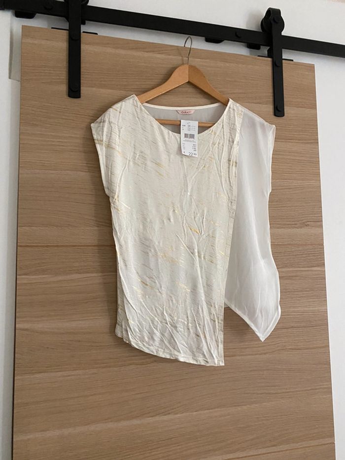 Tee Shirt Blanc et Doré Asymétrique Camaieu Taille M Neuf, avec étiquette