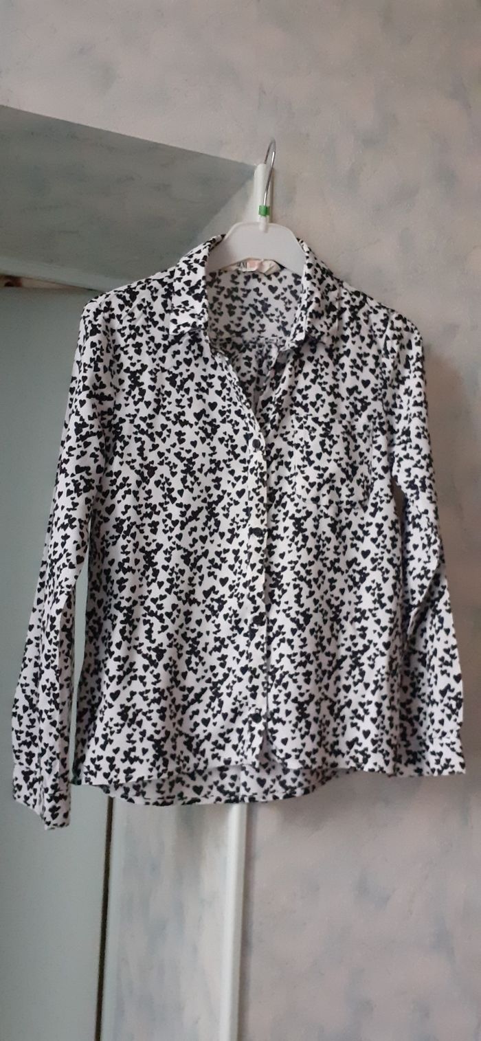 Vends un chemisier en viscose blanc et noir marque H&M 11-12 ans