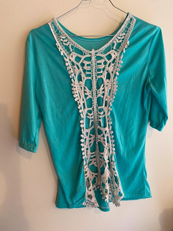 tee-shirts manches courtes turquoise taille unique le dos est ouvert #ibiza64140femmetu #ibiza64140femmeteeshirtstu