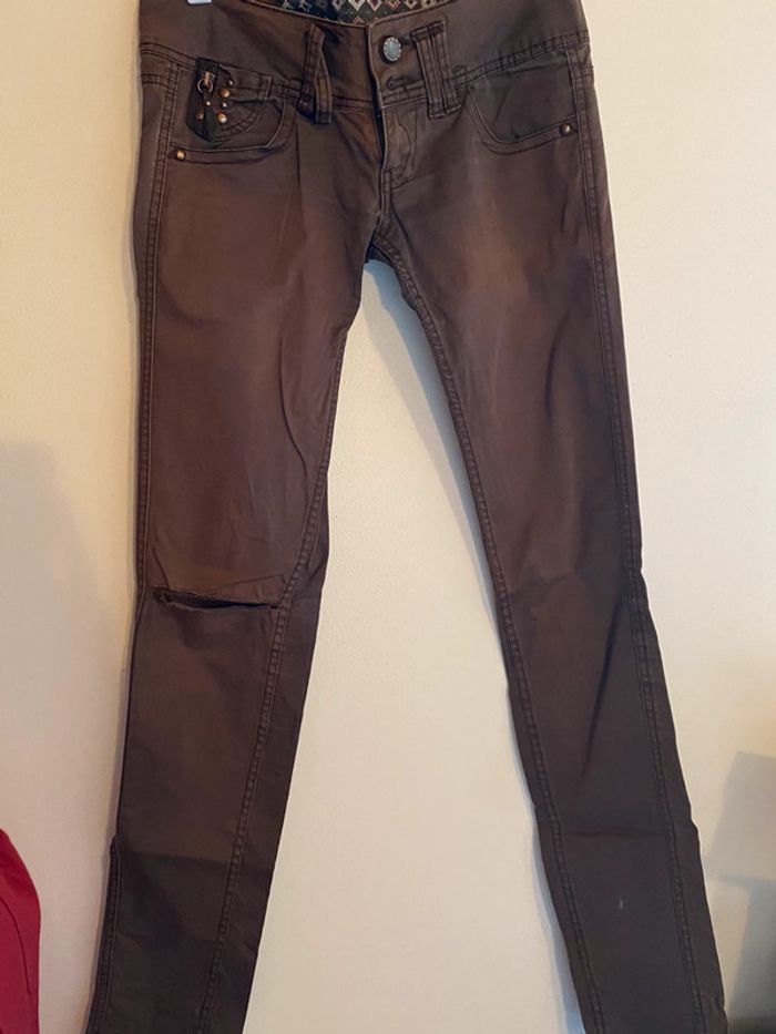 pantalon troué marrons taille très basse taille S le trou fait partie du pantalon #ibiza64140femmes #ibiza64140femmepantalonss