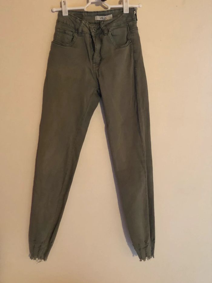 pantalon jean kaki taille S bas effet déchiré #ibiza64140femmes #ibiza64140femmepantalonss #ibiza64140femmehivers
