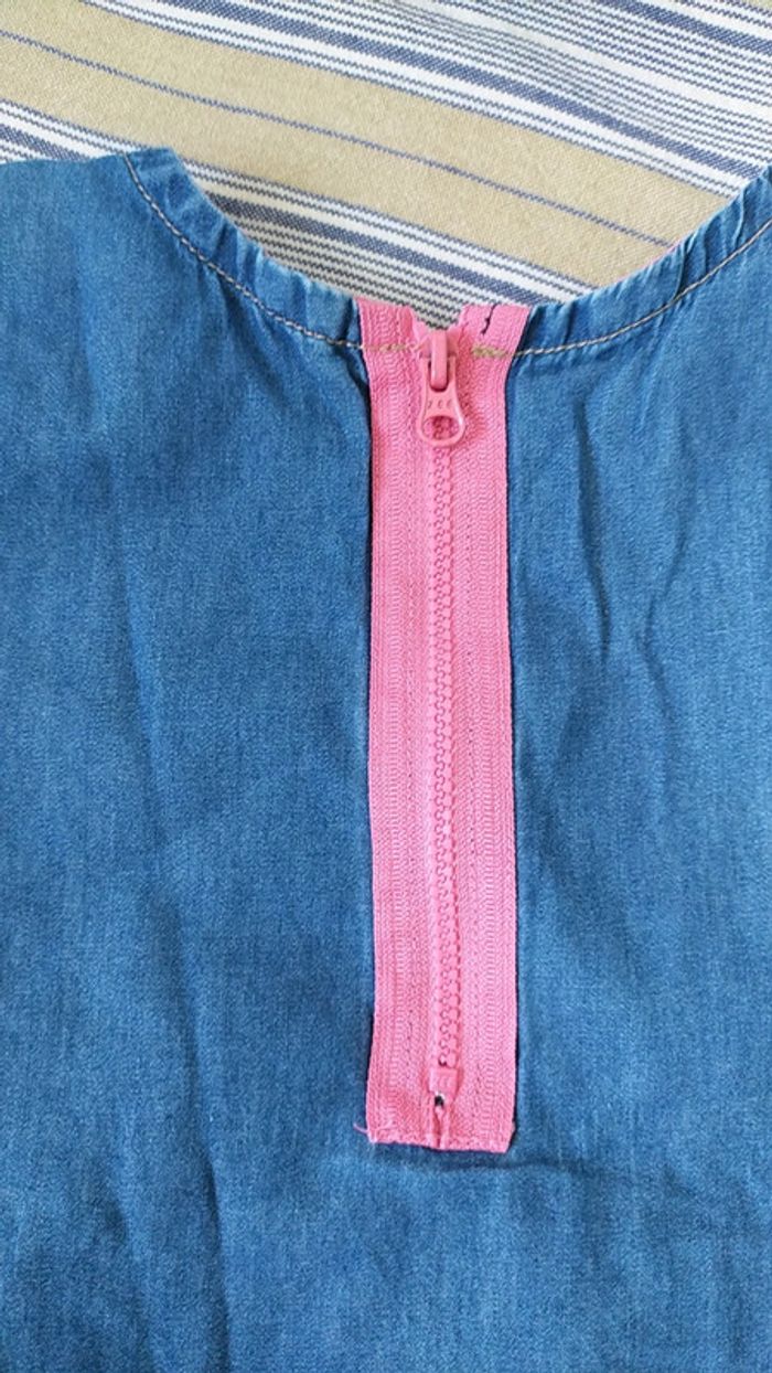 Taille grand. (Plutôt 3-4ans) légère et doublée. Fermeture par zip rose dans le dos. Manches courtes. très bon état