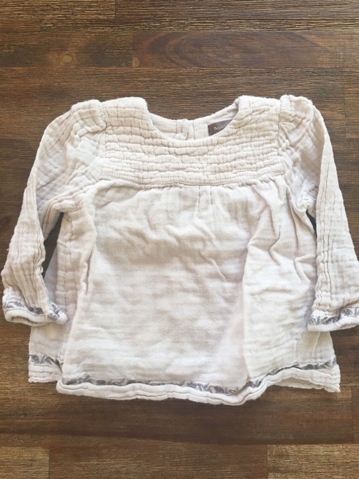 Jolie blouse/ chemise/ mauve/liseret gris/bout’chou/12m/boutons au dos