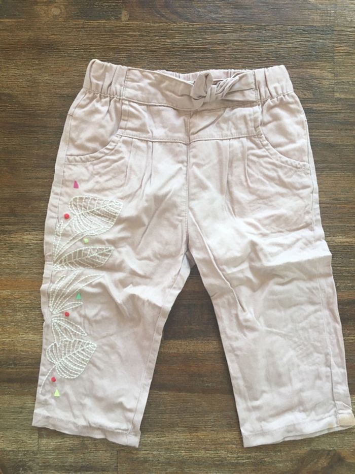 Joli pantalon rose clair/ motif fleur brodé/DPAM/9m - photo numéro 2