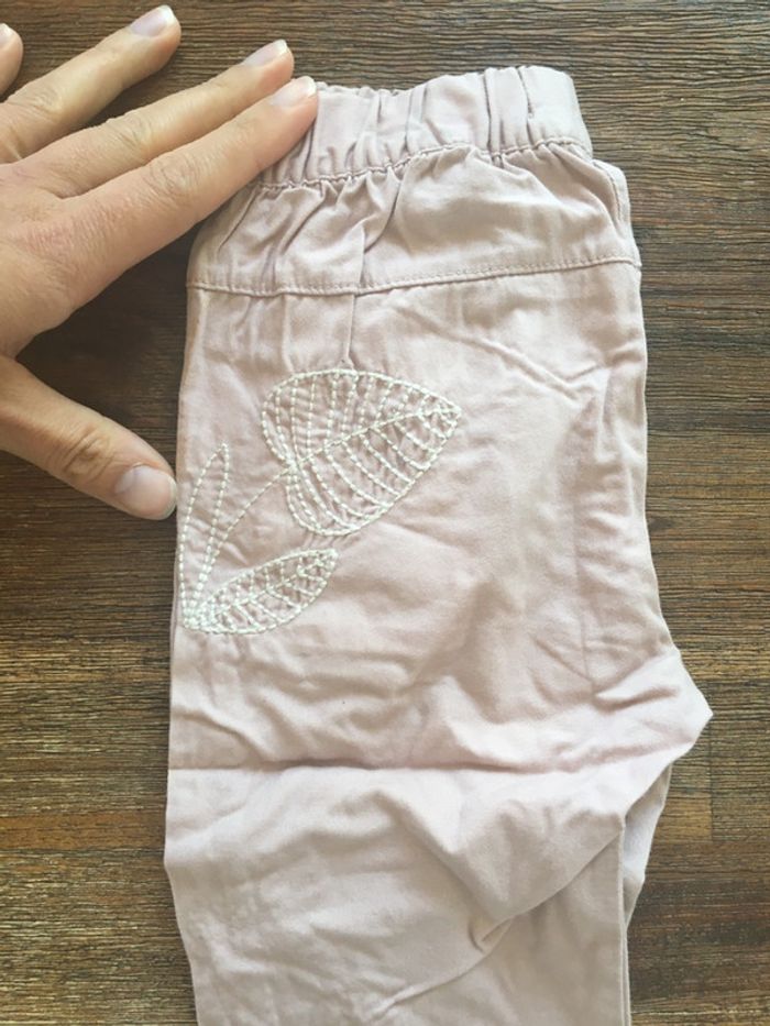Joli pantalon rose clair/ motif fleur brodé/DPAM/9m - photo numéro 5