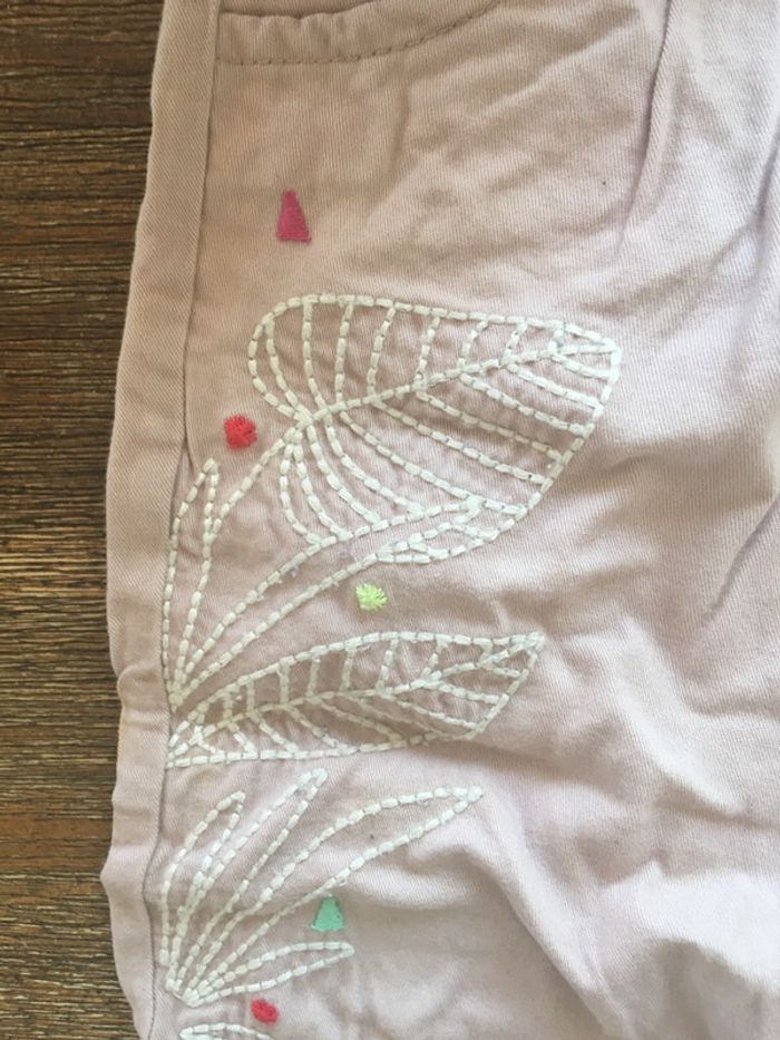 Joli pantalon rose clair/ motif fleur brodé/DPAM/9m - photo numéro 4