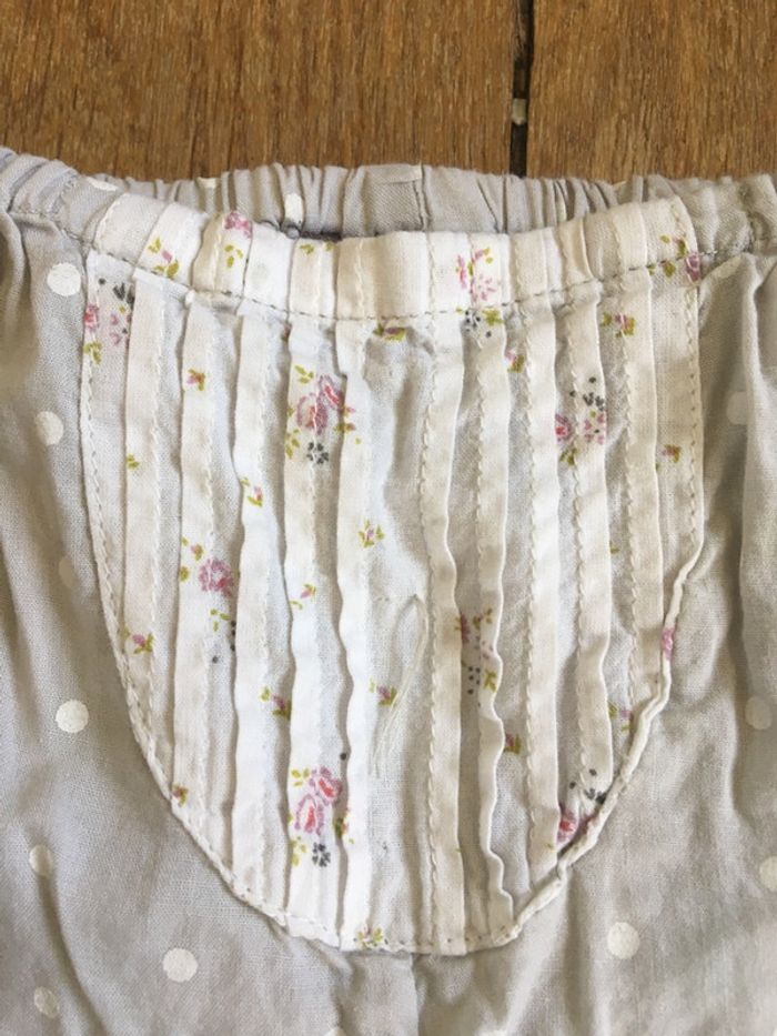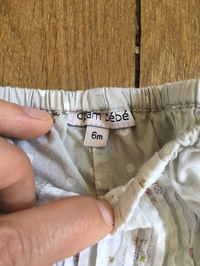 Joli pantacourt léger beige à pois blanc/DPAM /6m/ plis Liberty sur le devant