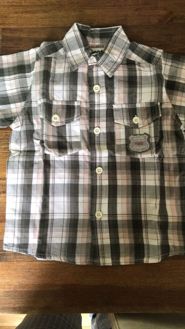 Chemise à carreaux manches courtes/ 24m/ Sucre d’orge - photo numéro 1